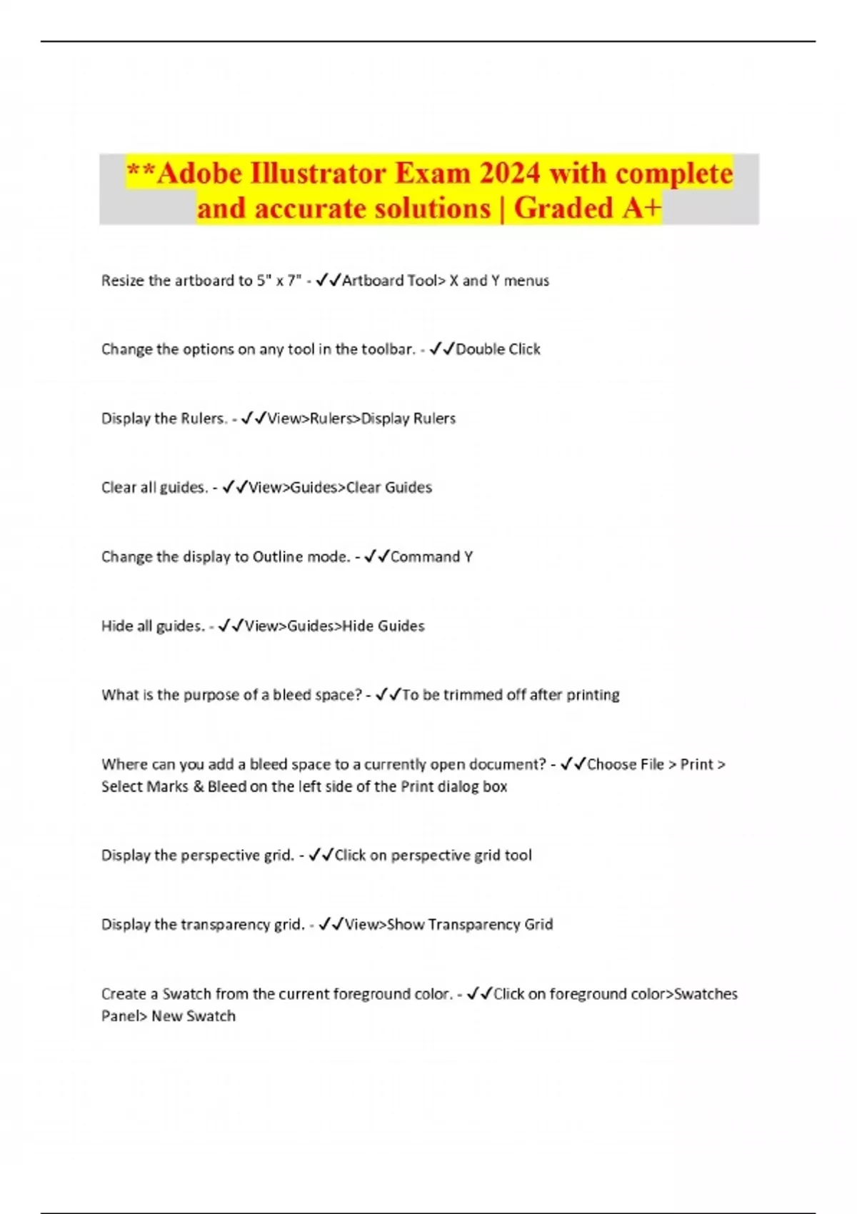 **Adobe Illustrator Exam 2024 with complete and accurate solutions | Graded A+