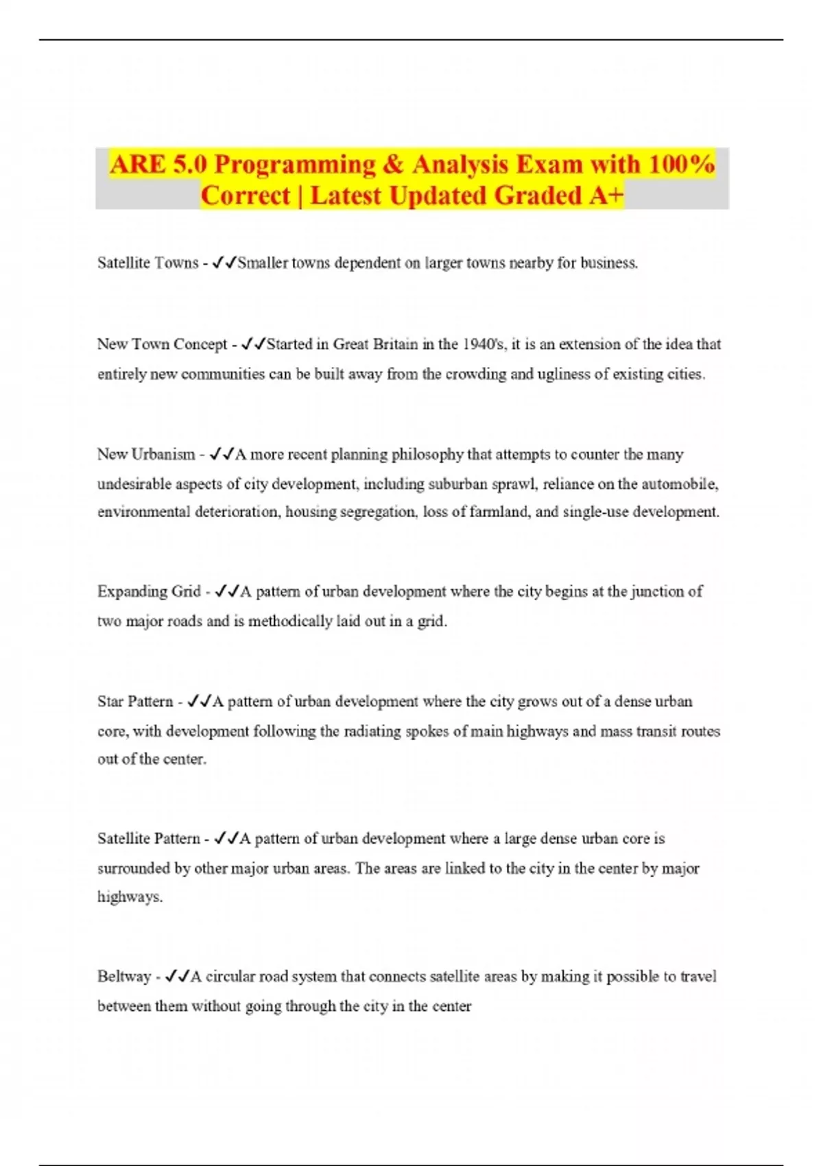 ARE 5.0 Programming & Analysis Exam with 100% Correct | Latest Updated Graded A+
