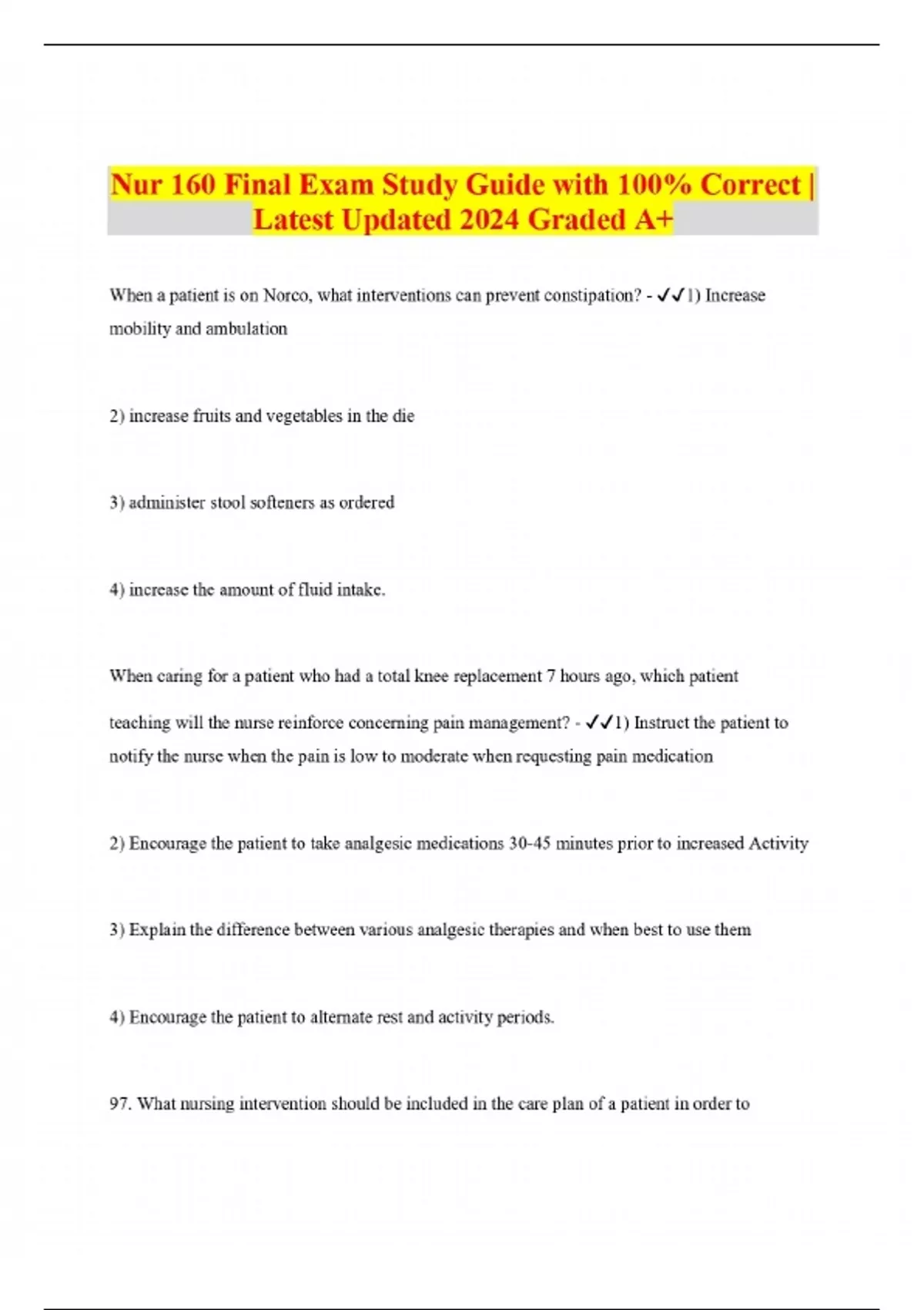 Nur 160 Final Exam Study Guide with 100% Correct | Latest Updated 2024 Graded A+