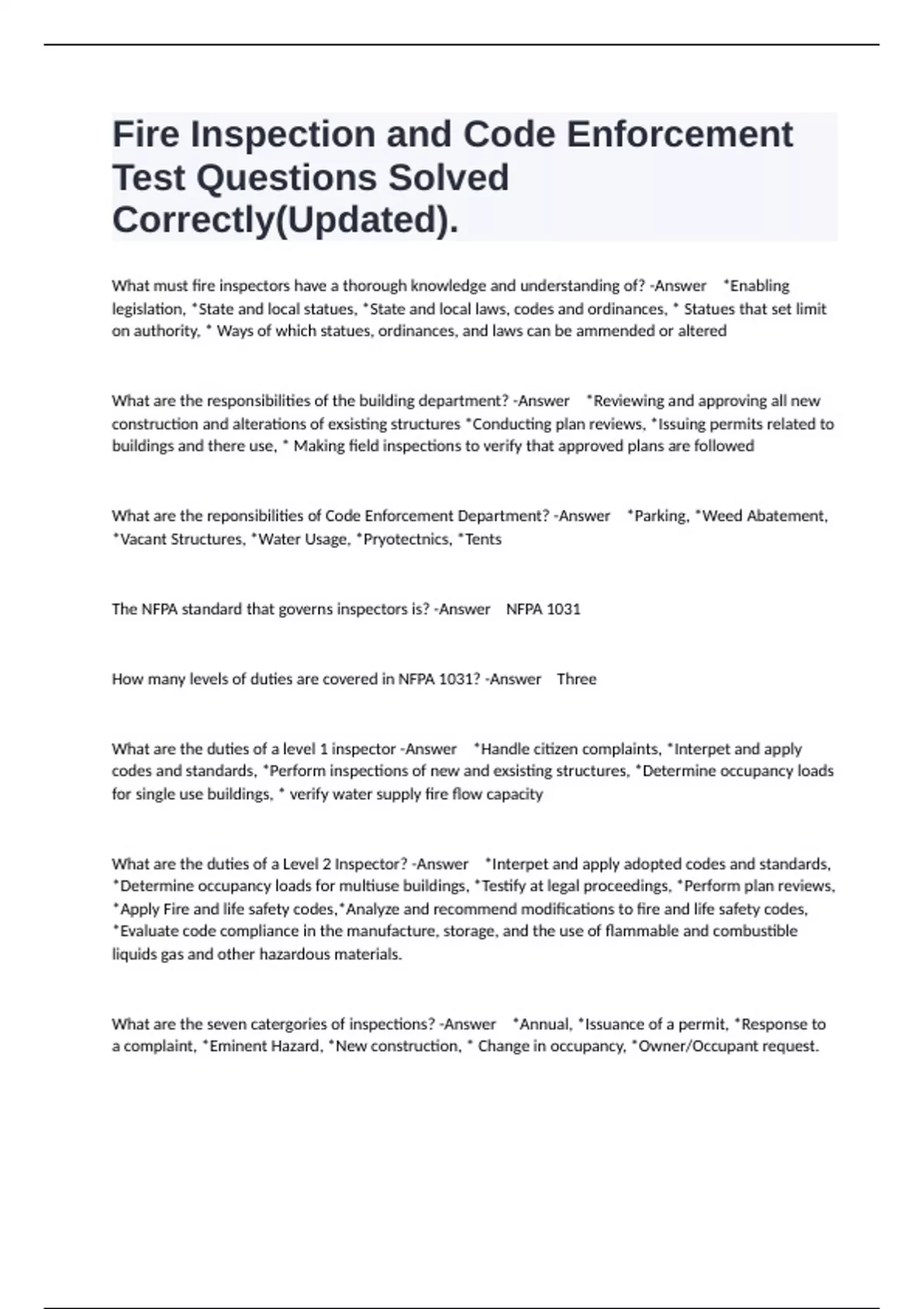 What are the duties of a level 1 inspector -Answer *Handle citizen complaints, *Interpet and apply