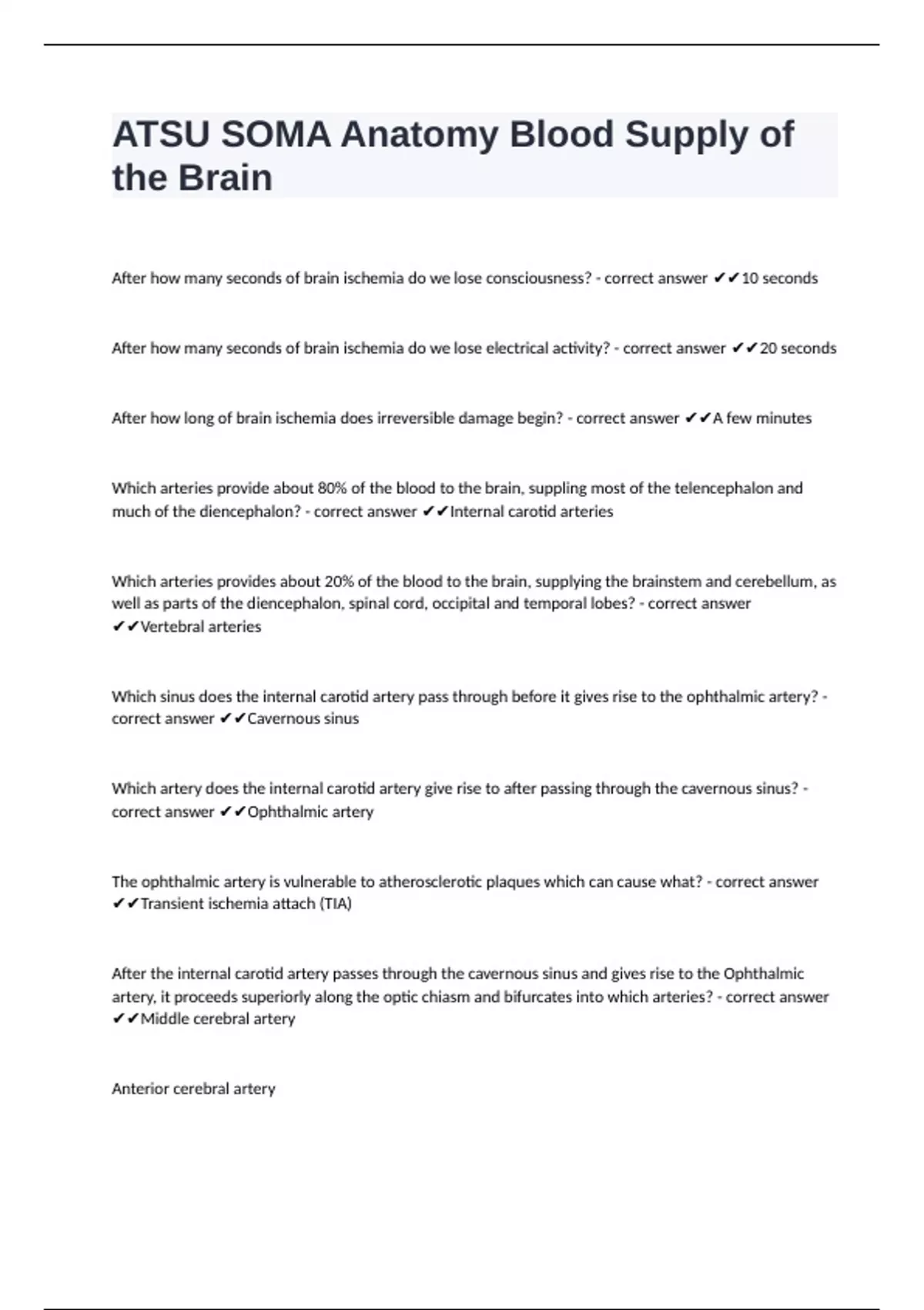 After how many seconds of brain ischemia do we lose consciousness? - correct answer ✔✔10 seconds