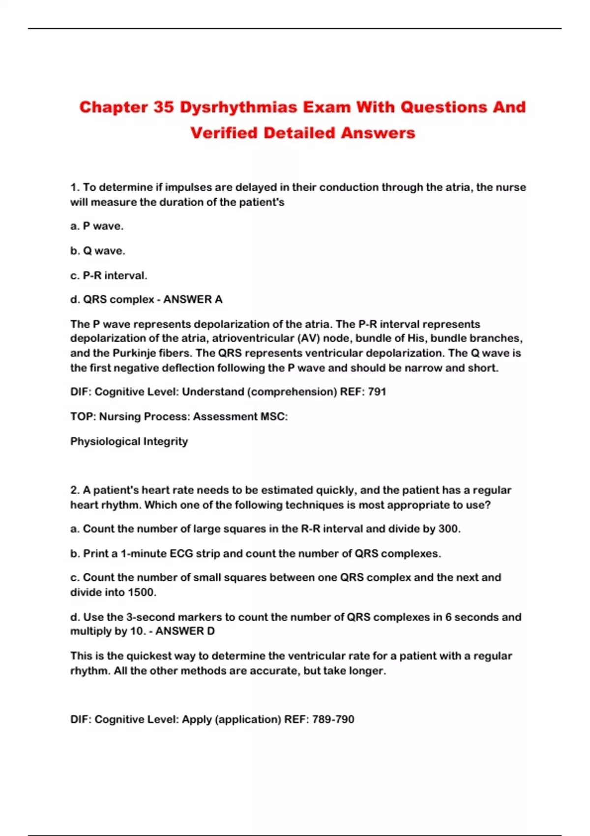 Chapter 35 Dysrhythmias Exam With Questions And Verified Detailed Answers...