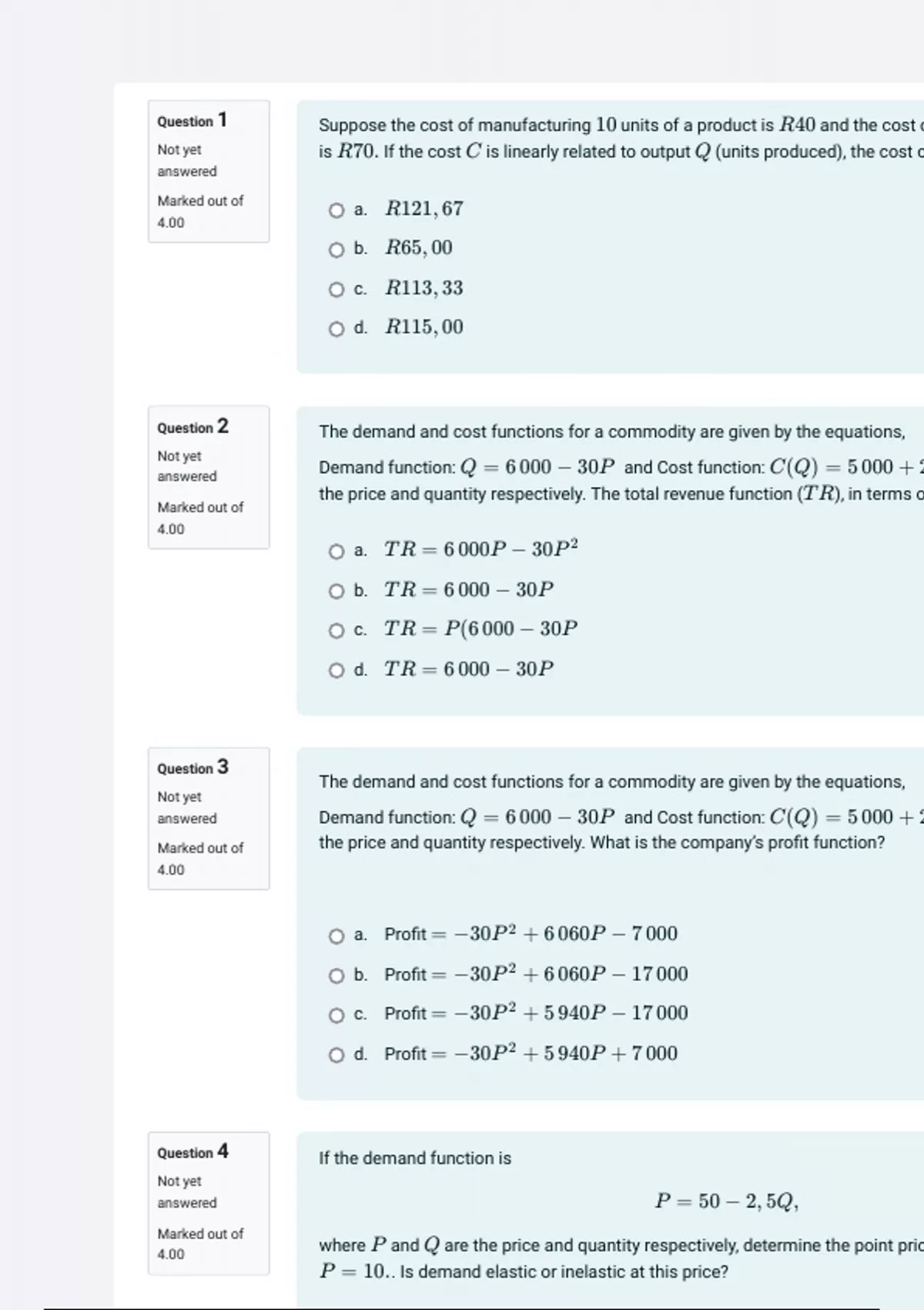 Question 7 A retail store sells a product at a price of R3,10 per unit. If the total cost of prod