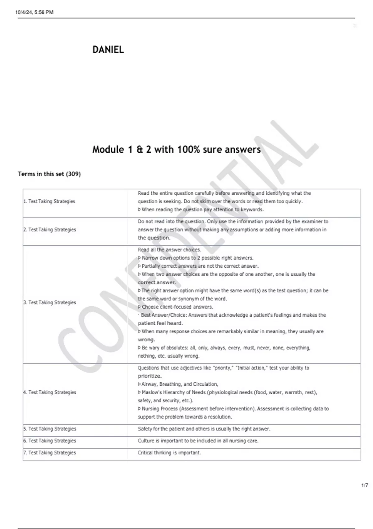 1. Test Taking Strategies question is seeking. Do not skim over the words or read them too quickly.
