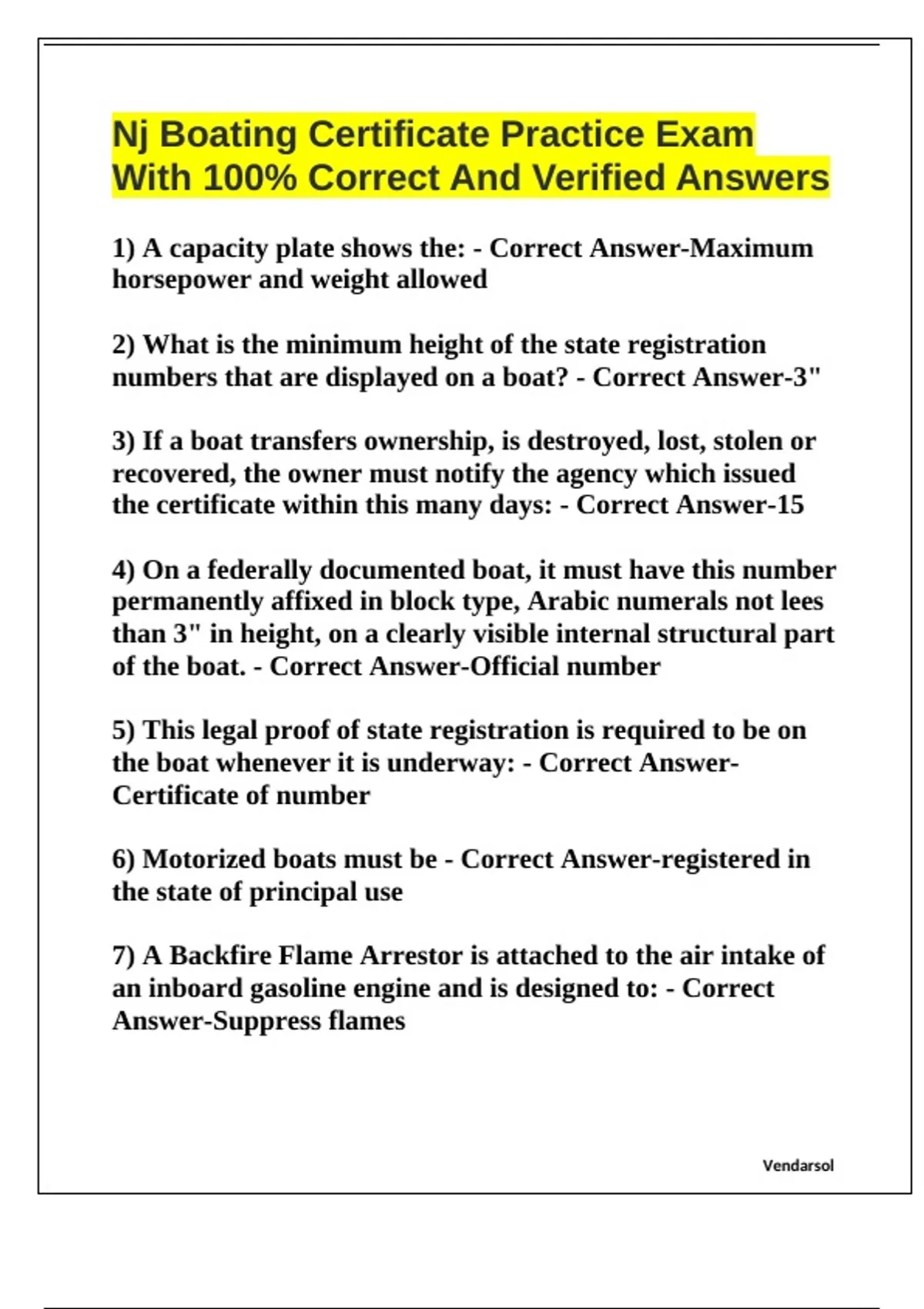 6) Motorized boats must be - Correct Answer-registered in