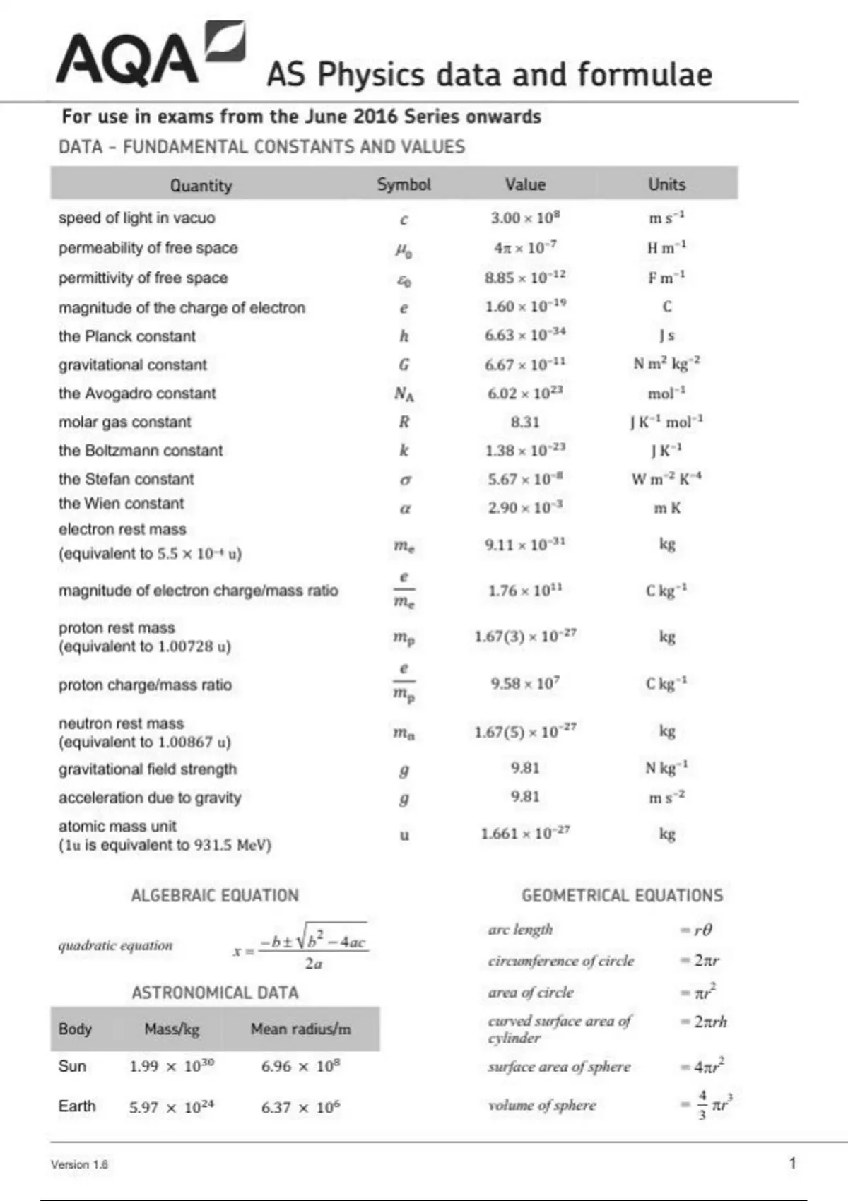 aqa as physics data and formulae 74071 insert pap