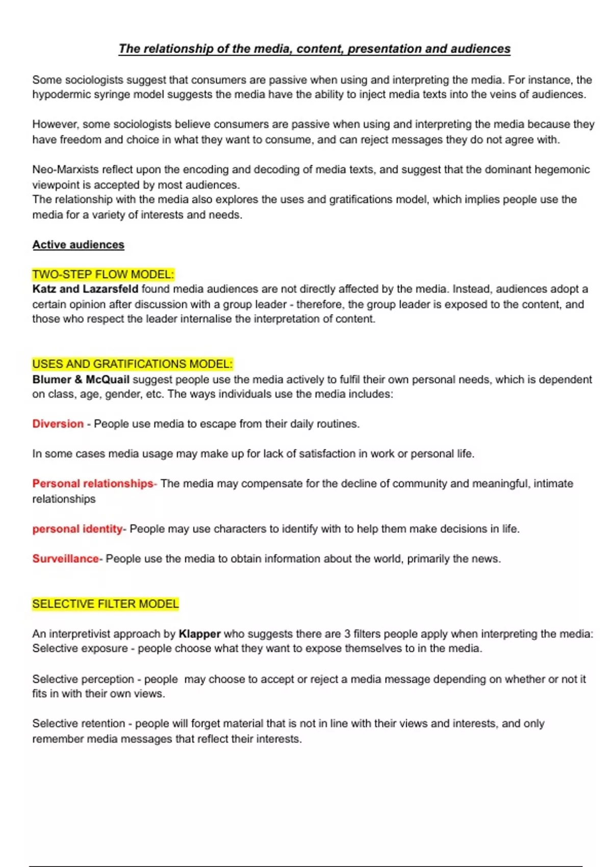 Selective perception - people may choose to accept or reject a media message depending on whether or not it