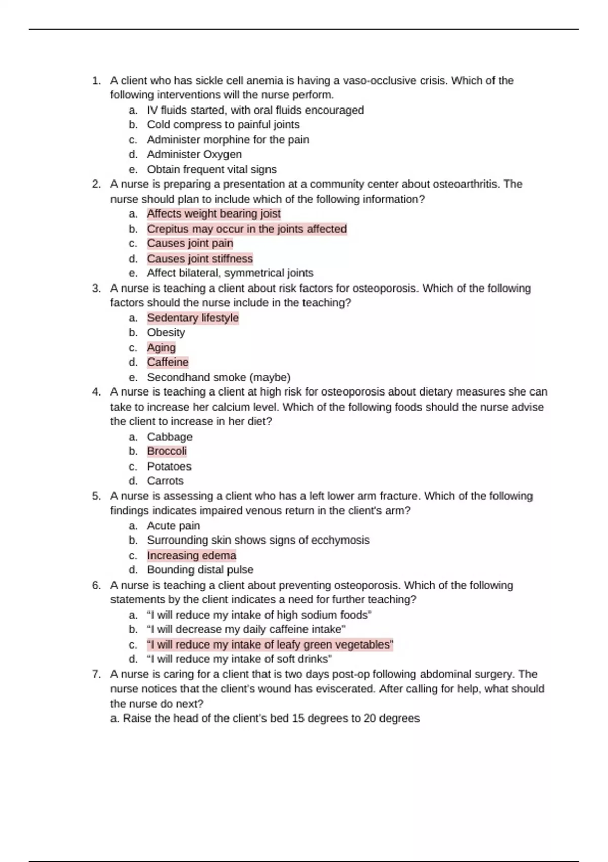 1. A client who has sickle cell anemia is having a vaso-occlusive crisis. Which of the