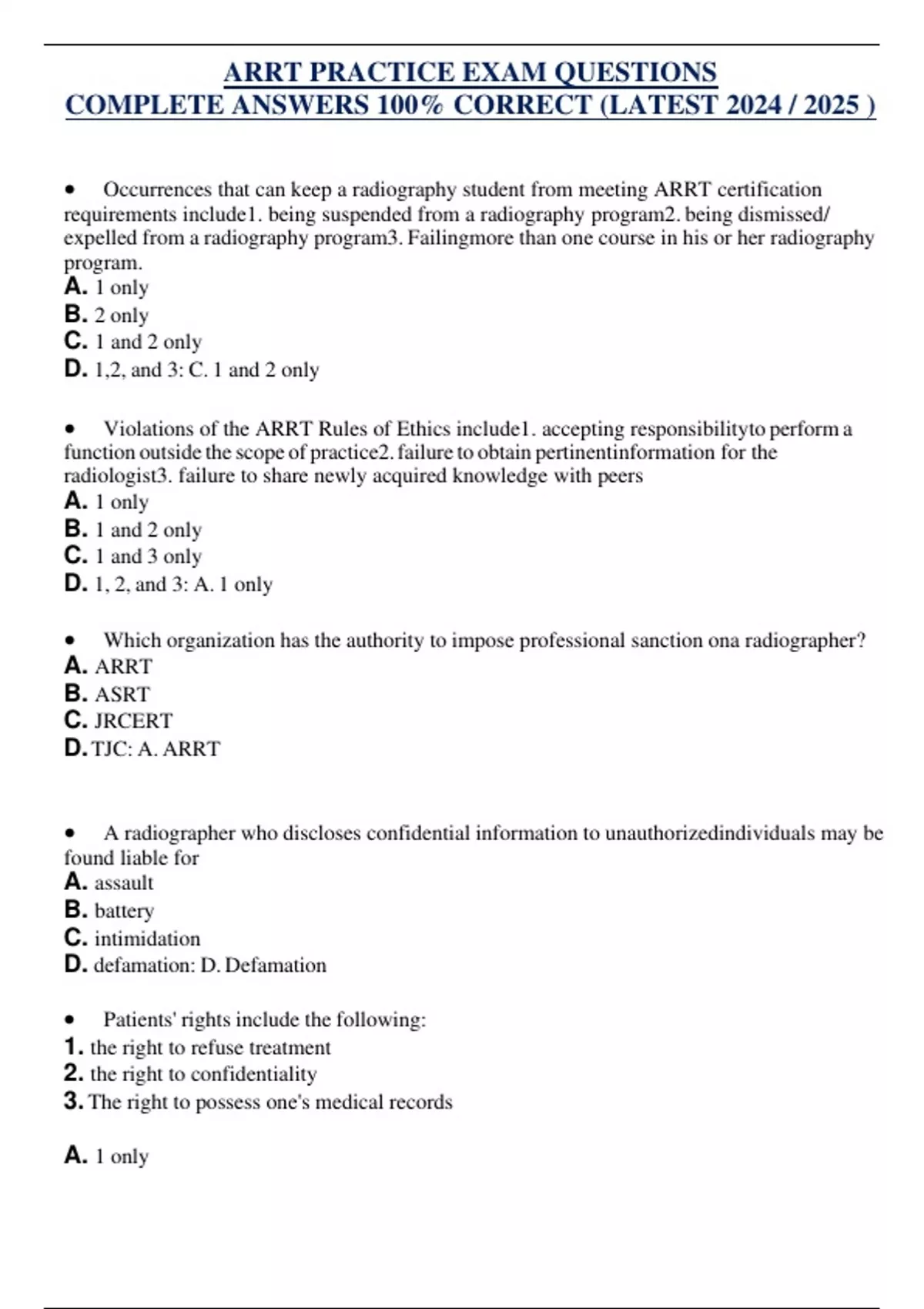 • Occurrences that can keep a radiography student from meeting ARRT certification