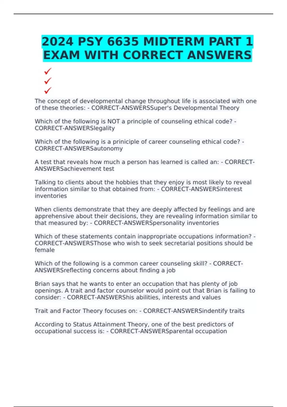 CORRECT-ANSWERSvaluing