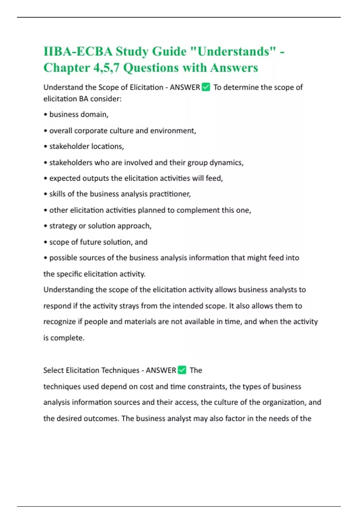 Understand the Scope of Elicitation - ANSWER To determine the scope of