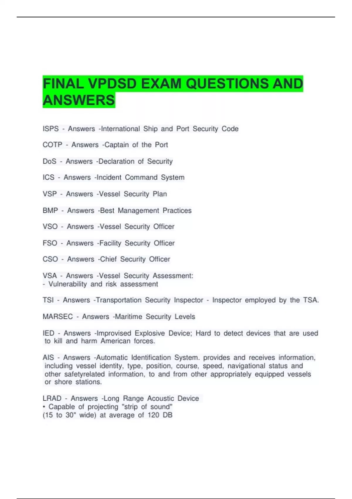 VSO ii- iiAnswers ii-Vessel iiSecurity iiOfficer