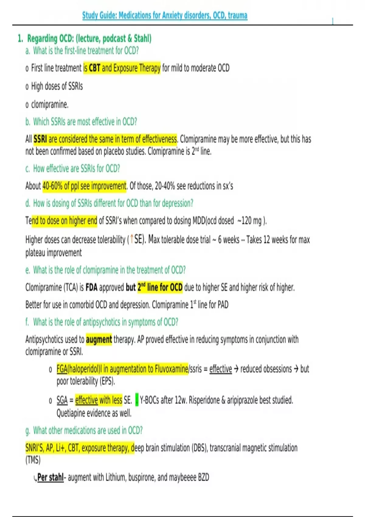1. Regarding OCD: (lecture, podcast & Stahl)