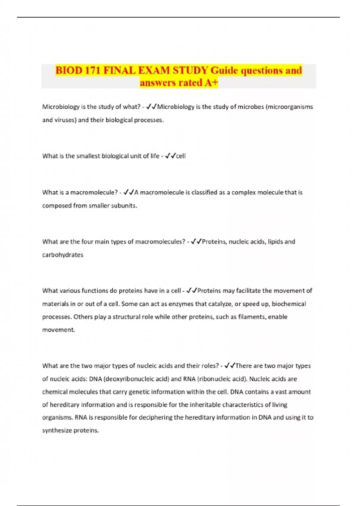 BIOD 171 Final Exam Study Guide questions and answers rated A+