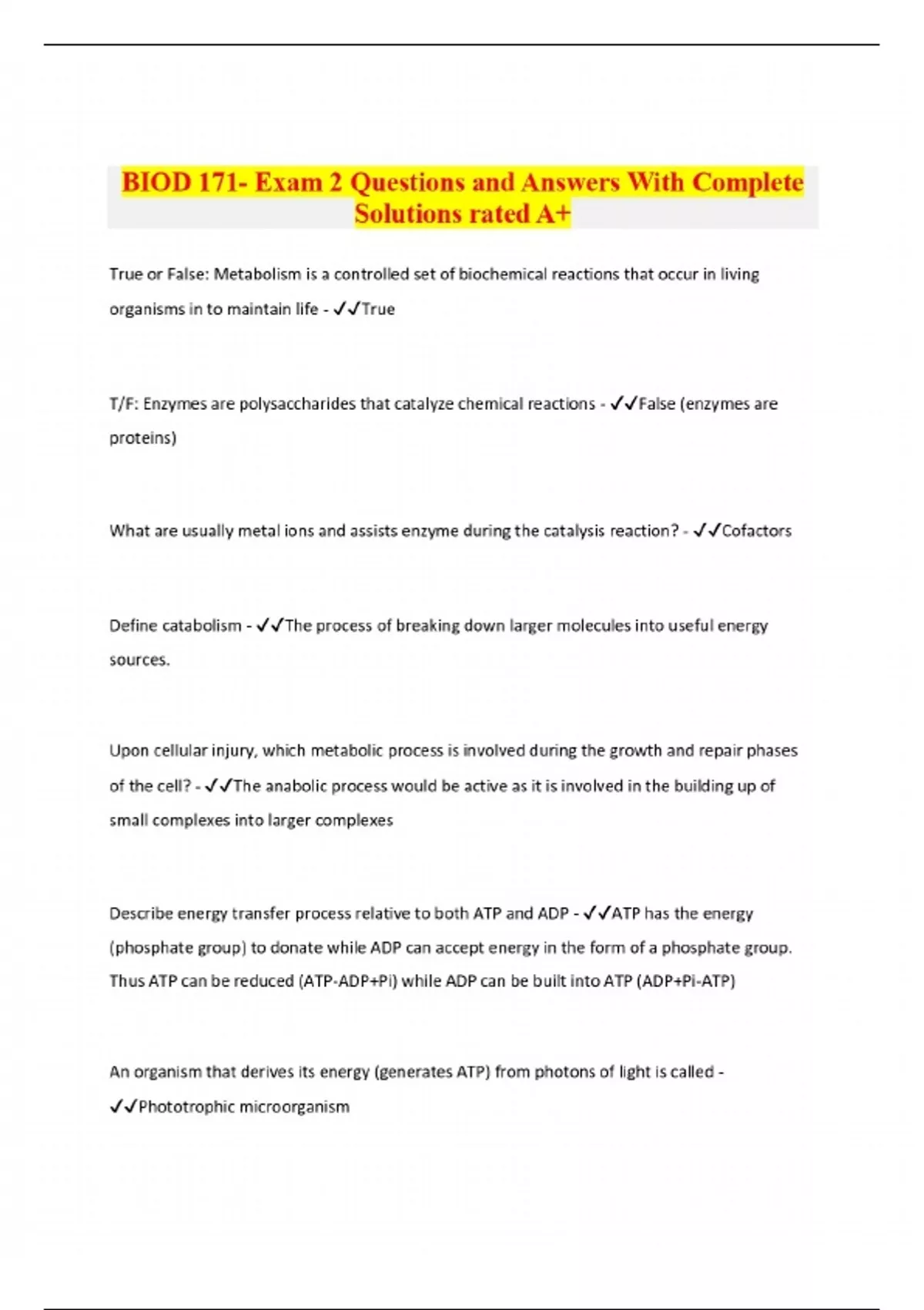 BIOD 171- Exam 2 Questions and Answers With Complete Solutions rated A+