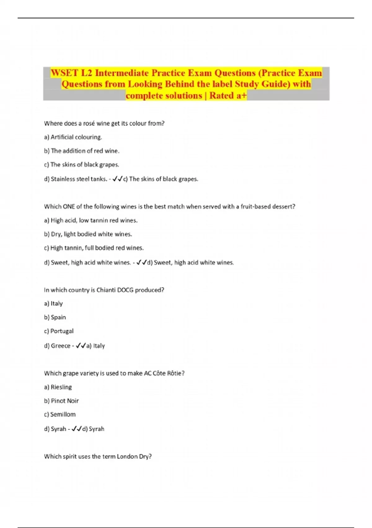 WSET L2 Intermediate Practice Exam Questions (Practice Exam Questions from Looking Behind the label Study Guide) with complete solutions | Rated a+