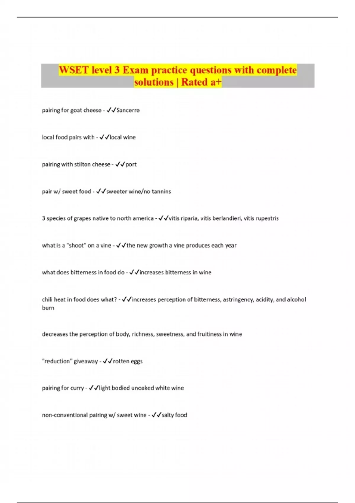 wset level 3 exam practice questions with complete