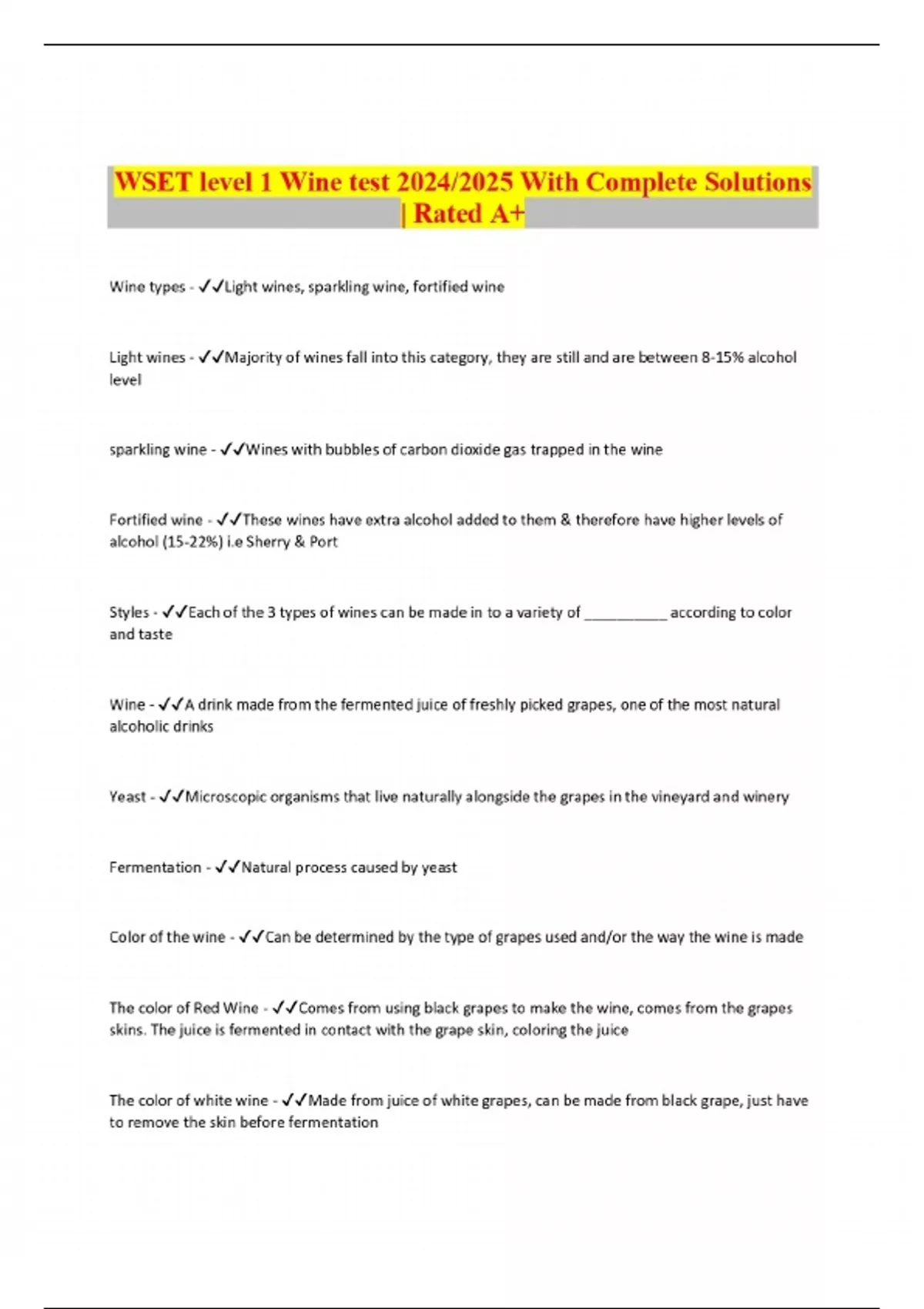 WSET level 1 Wine test 2024/2025 With Complete Solutions | Rated A+