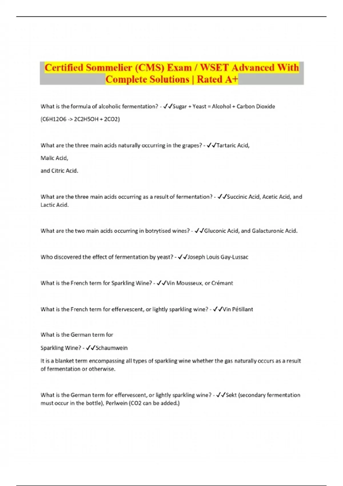 Certified Sommelier (CMS) Exam / WSET Advanced With Complete Solutions | Rated A+
