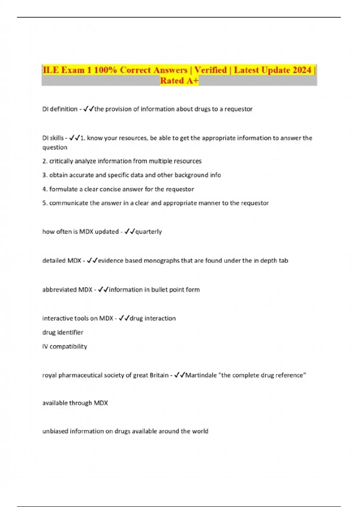 ILE Exam 1 100% Correct Answers | Verified | Latest Update 2024 | Rated A+