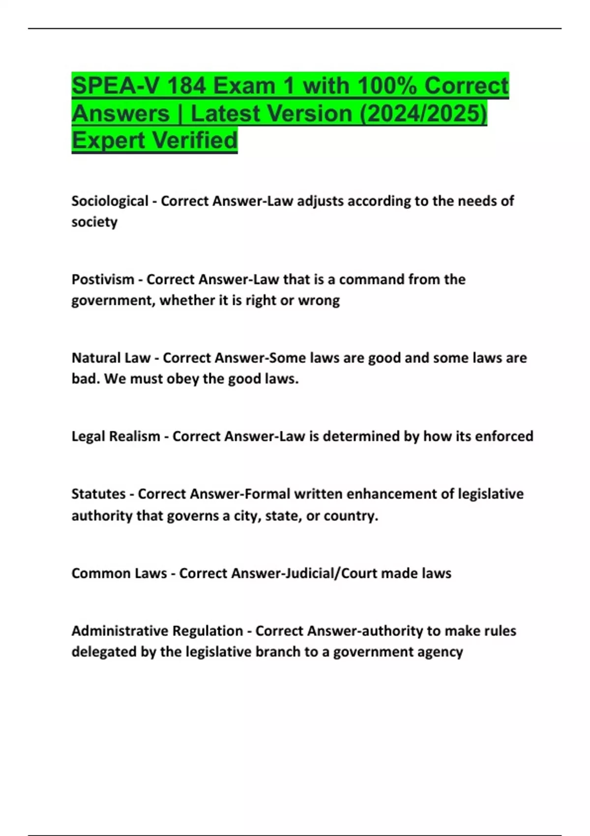 Legal Realism - Correct Answer-Law is determined by how its enforced