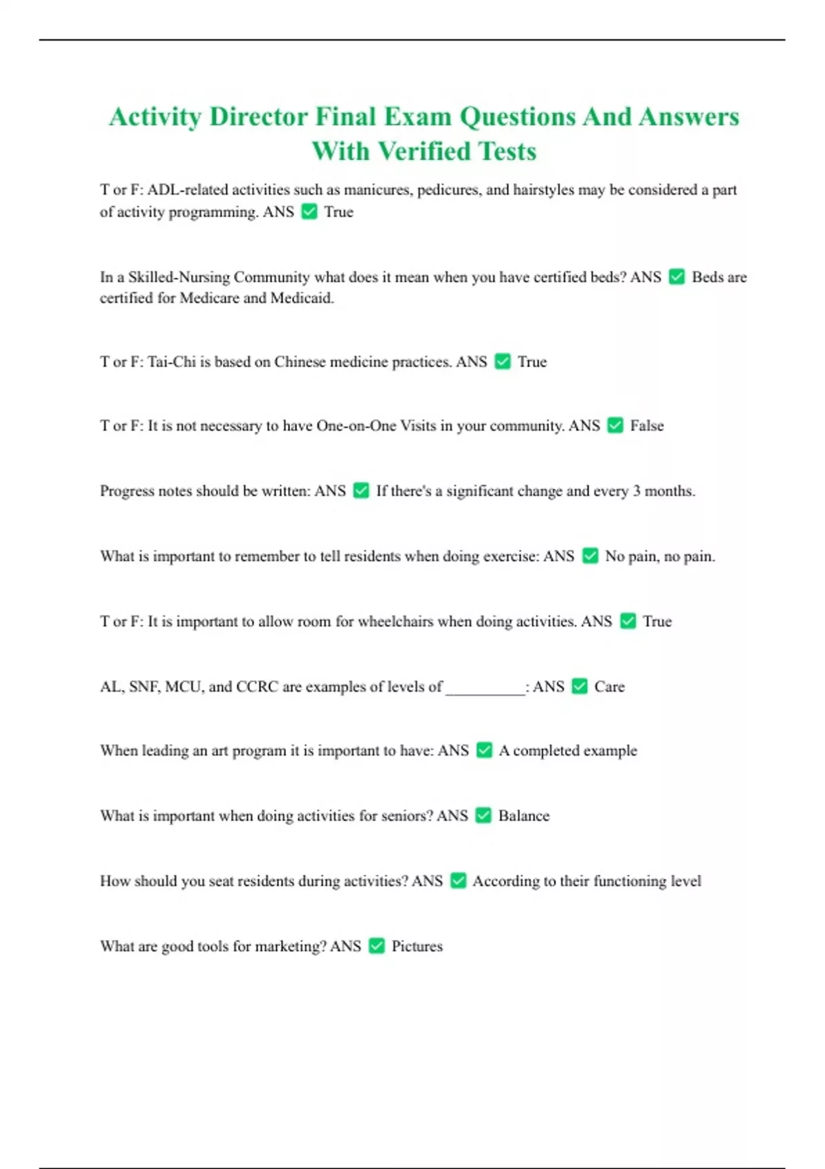 AL, SNF, MCU, and CCRC are examples of levels of __________: ANS Care