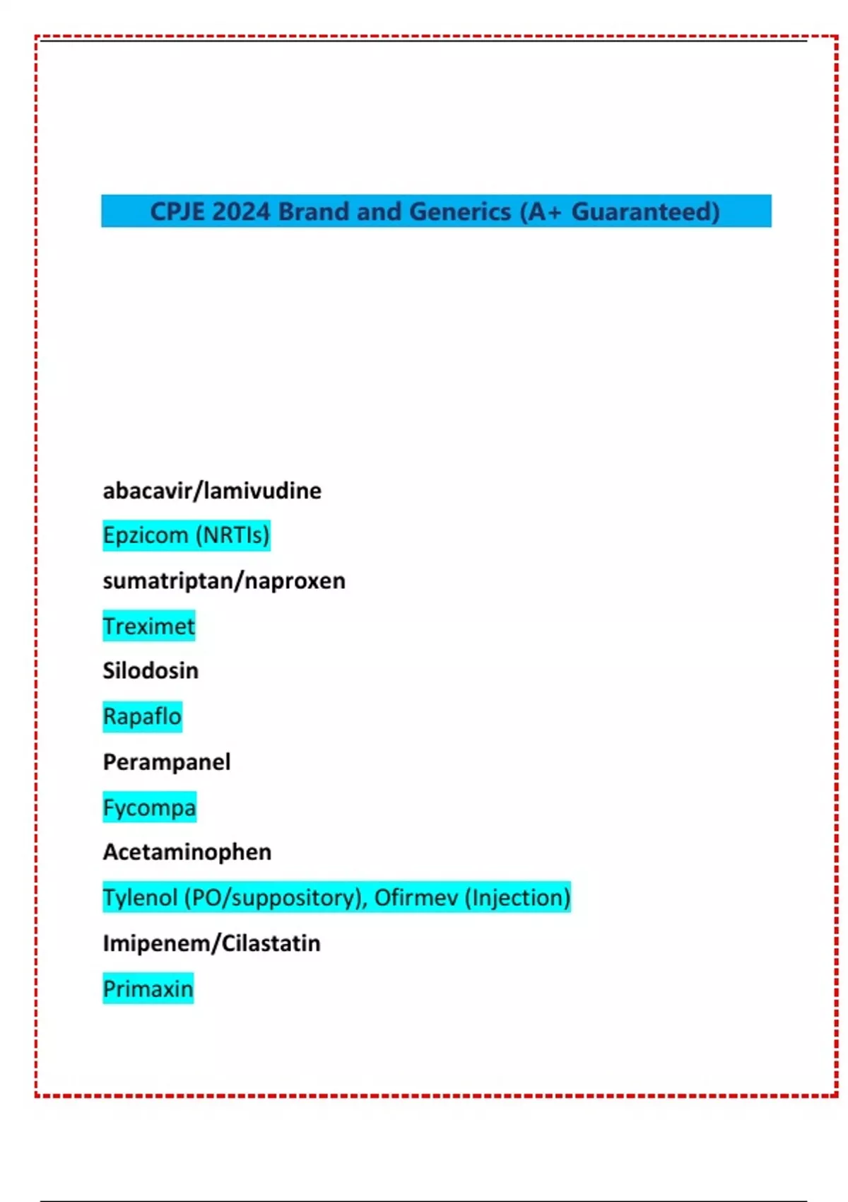CPJE 2024 Brand and Generics (A+ Guaranteed)