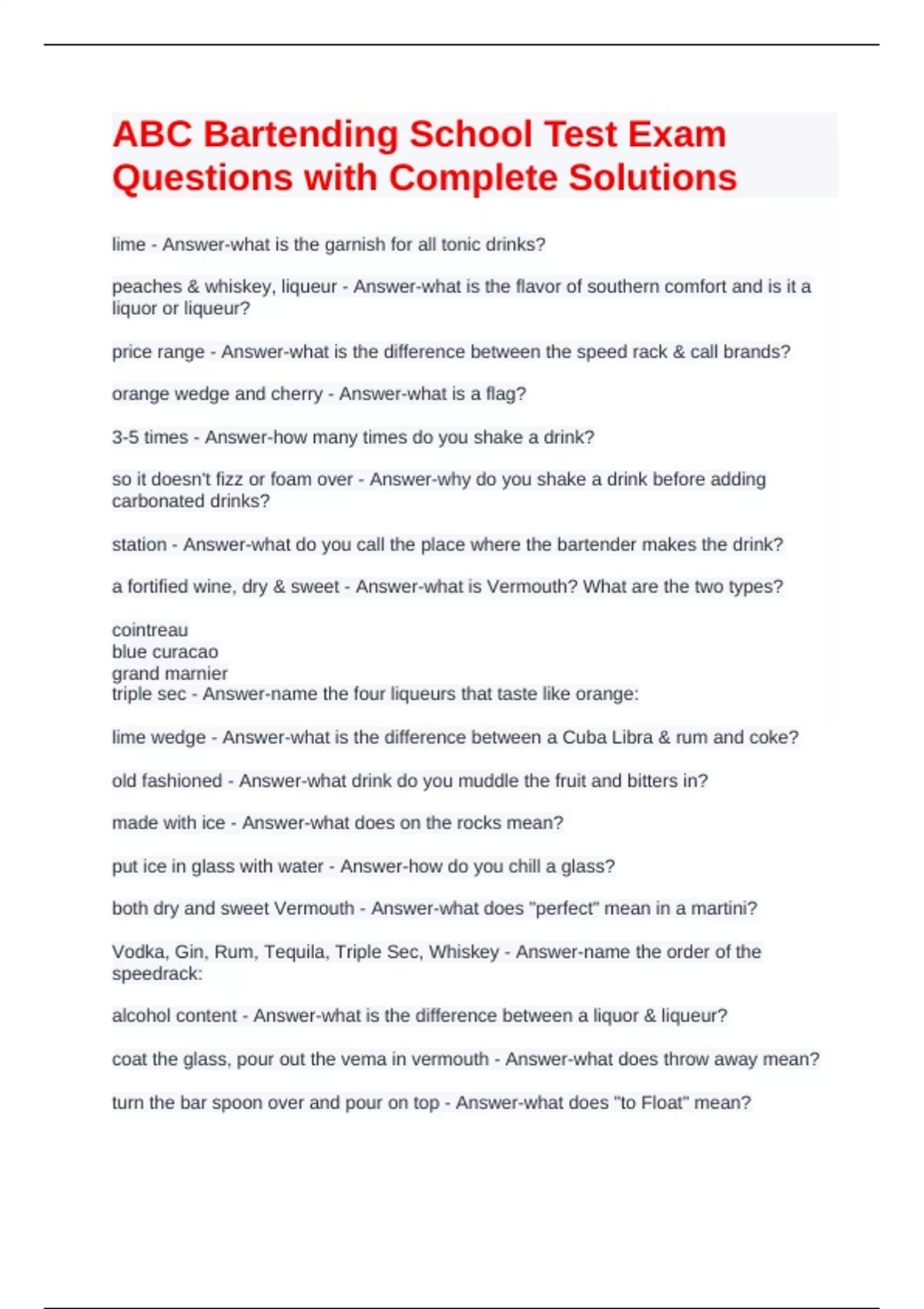ABC Bartending School Test Exam Questions with Complete Solutions