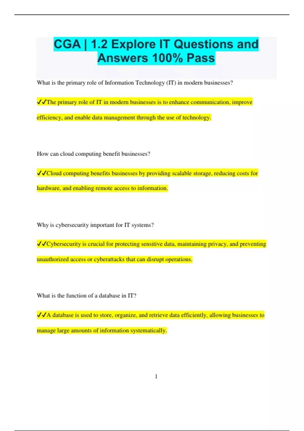 ✔✔The primary role of IT in modern businesses is to enhance communication, improve