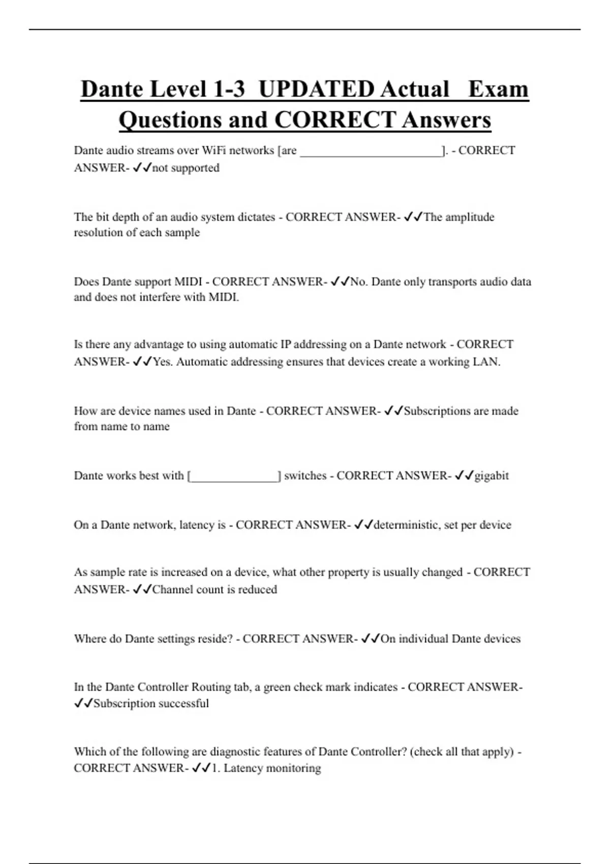 Does Dante support MIDI - CORRECT ANSWER- ✔✔No. Dante only transports audio data
