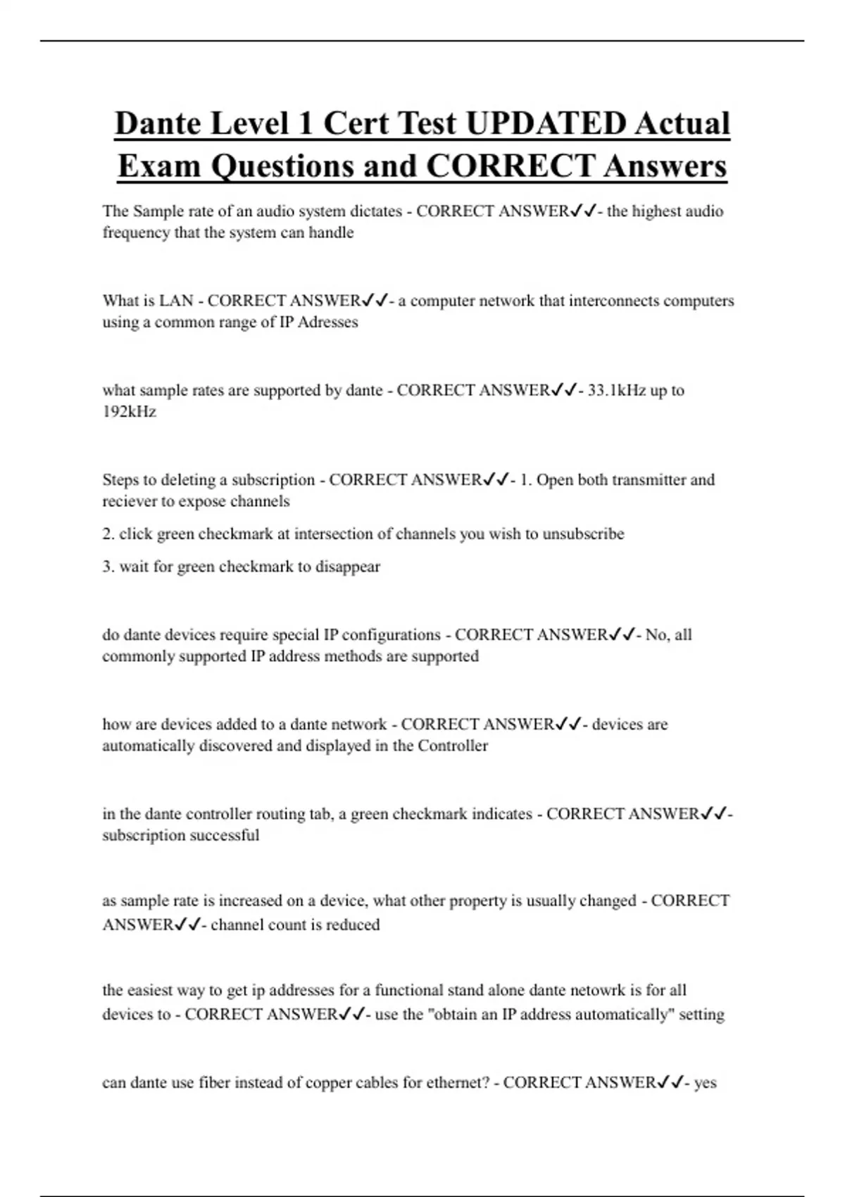 what sample rates are supported by dante - CORRECT ANSWER✔✔- 33.1kHz up to