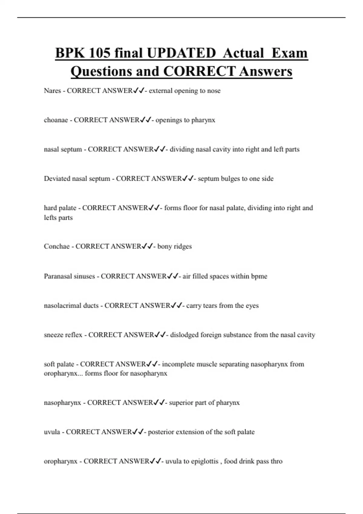Questions and CORRECT Answers