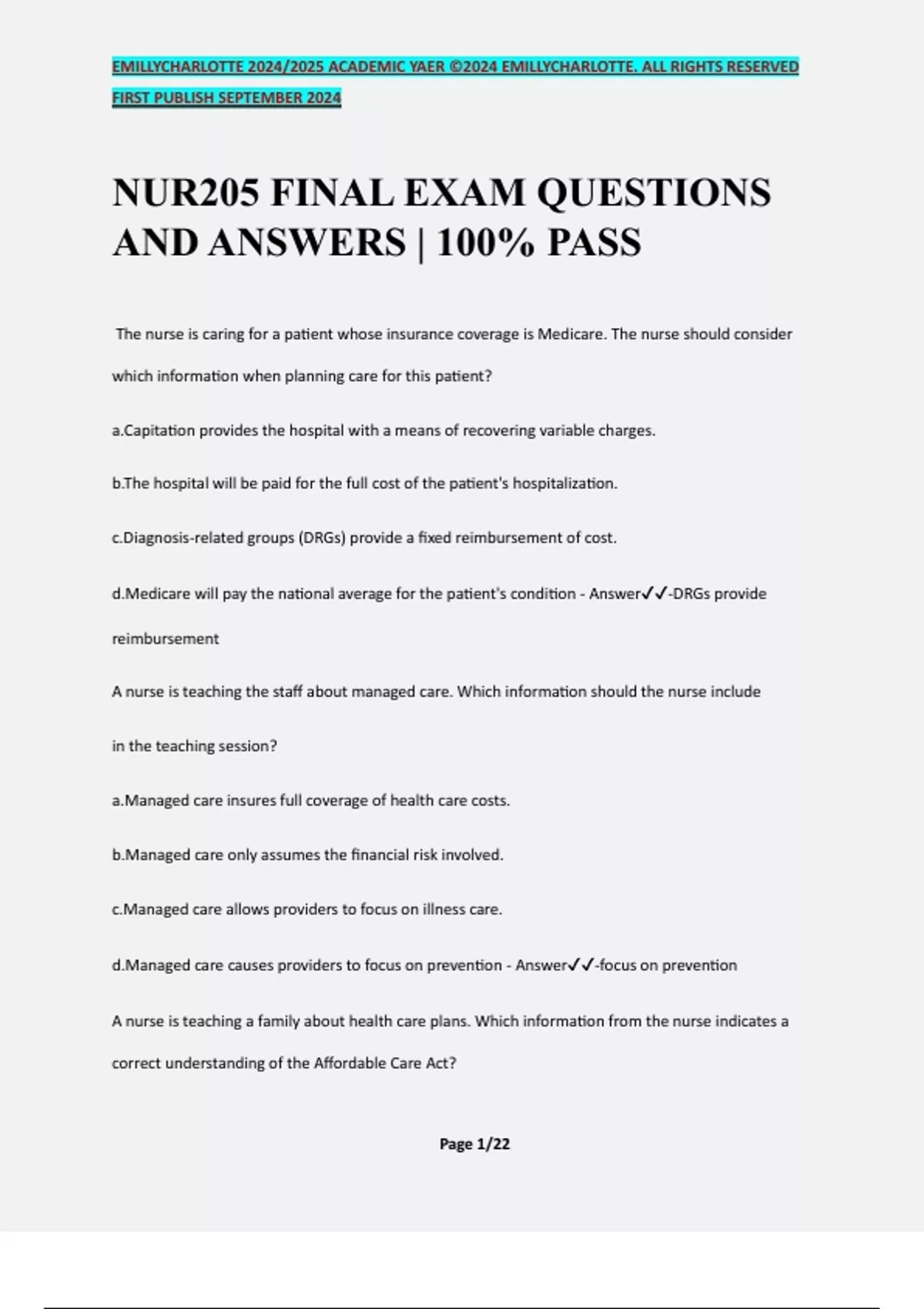 d.Managed care causes providers to focus on prevention - Answer✔✔-focus on prevention