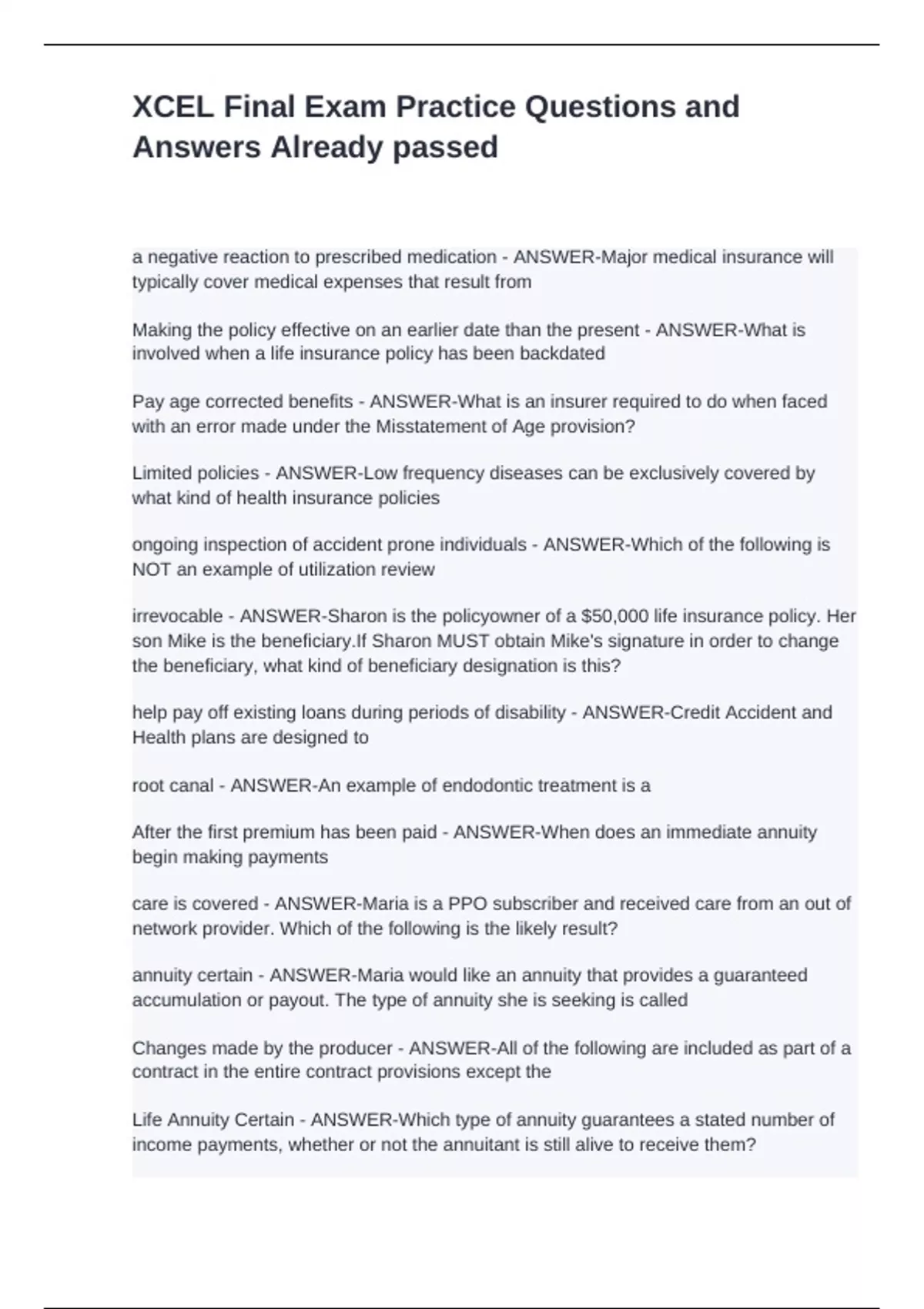Answers Already passed