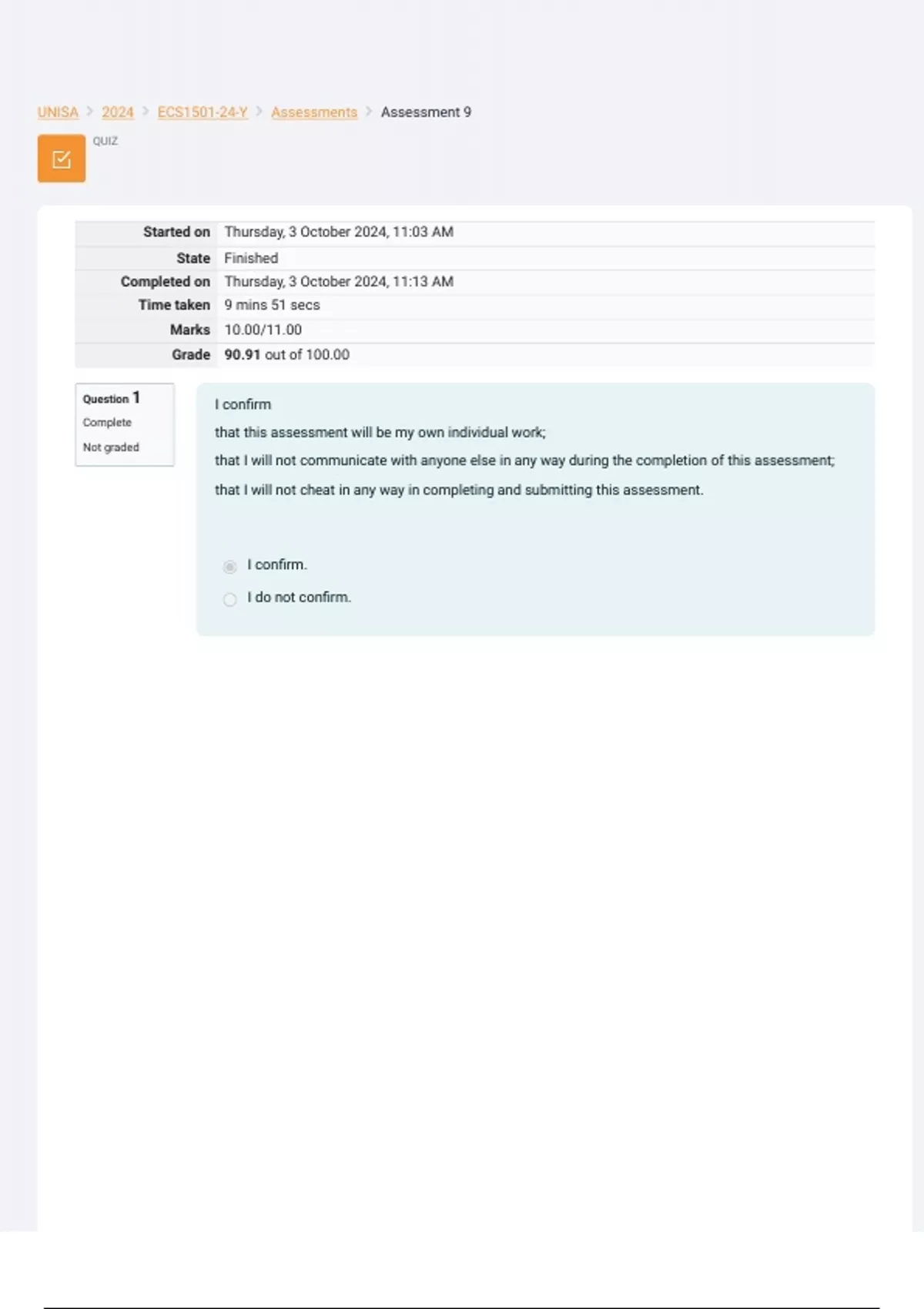 UNISA  2024  ECS1501-24-Y  Assessments  Assessment 9