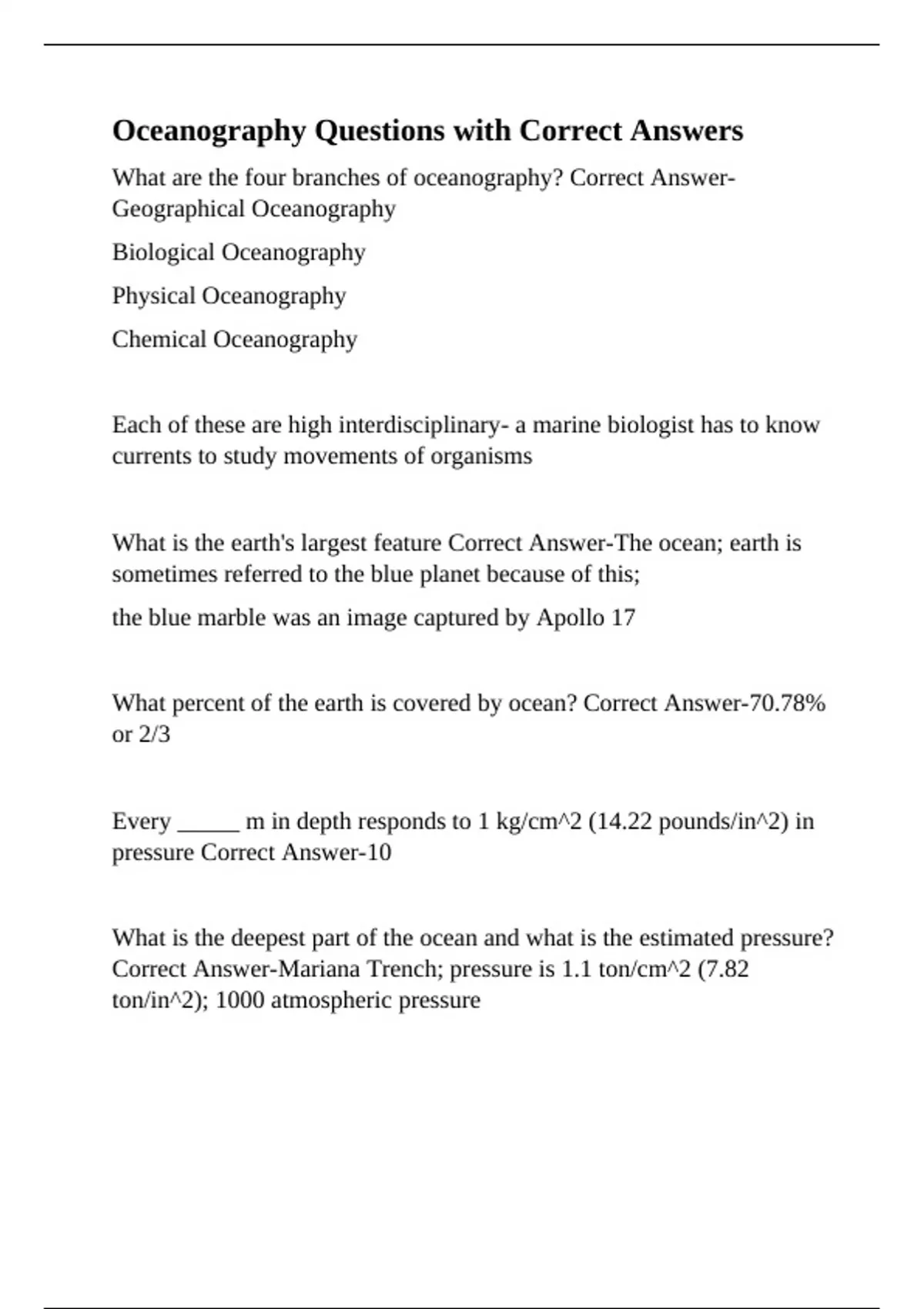 What is the deepest spot of the ocean? Correct Answer-Mariana Trench