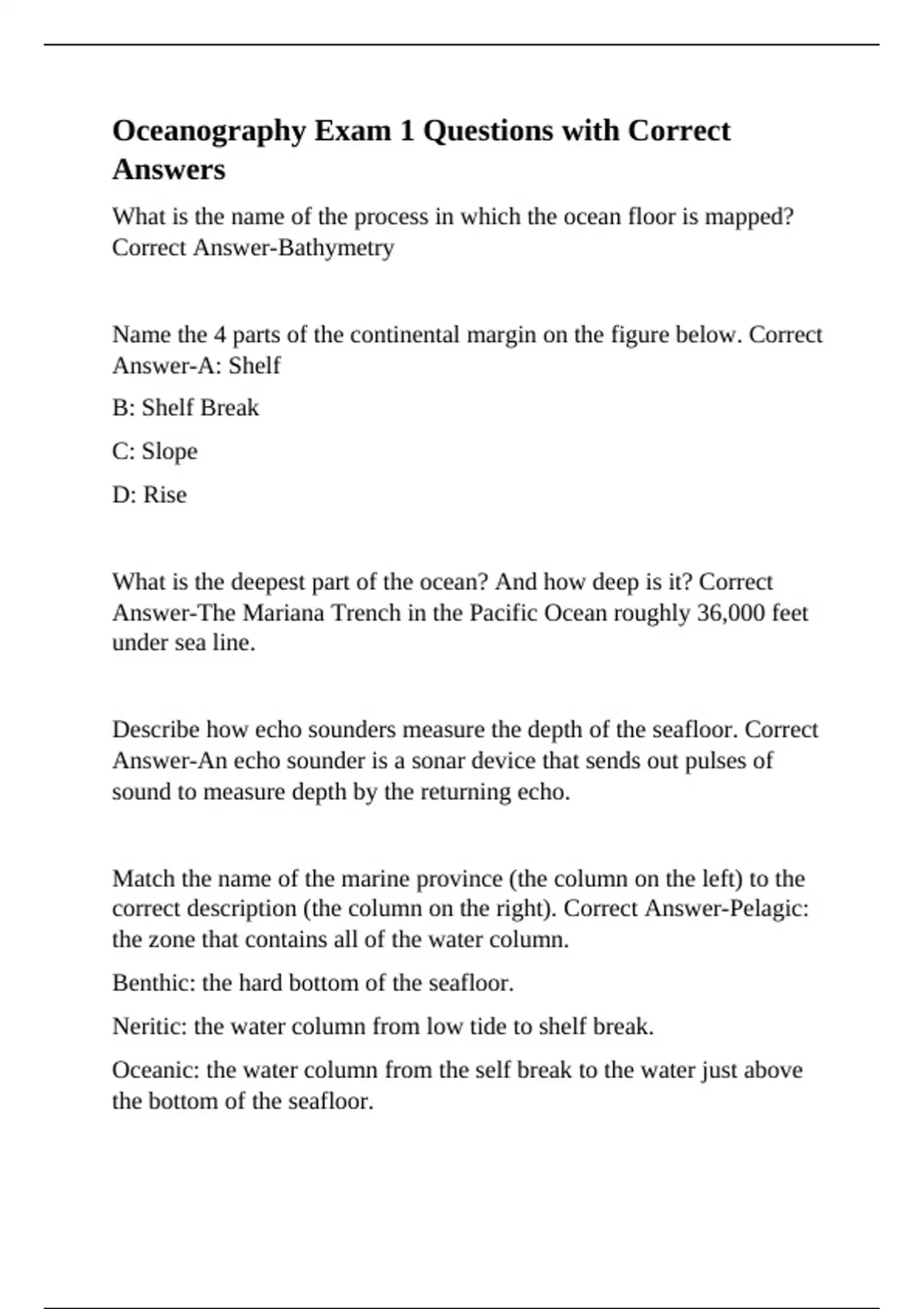 Oceanography Exam 1 Questions with Correct