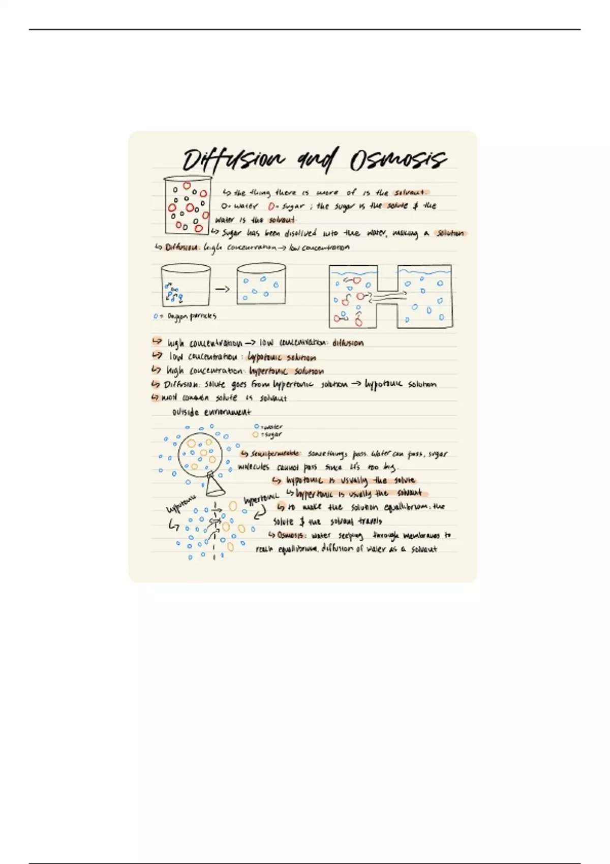 Comprehensive and detailed note on the basic foundations on osmosis, how it affects the body and the differences between hypo and hypertonic solutions.