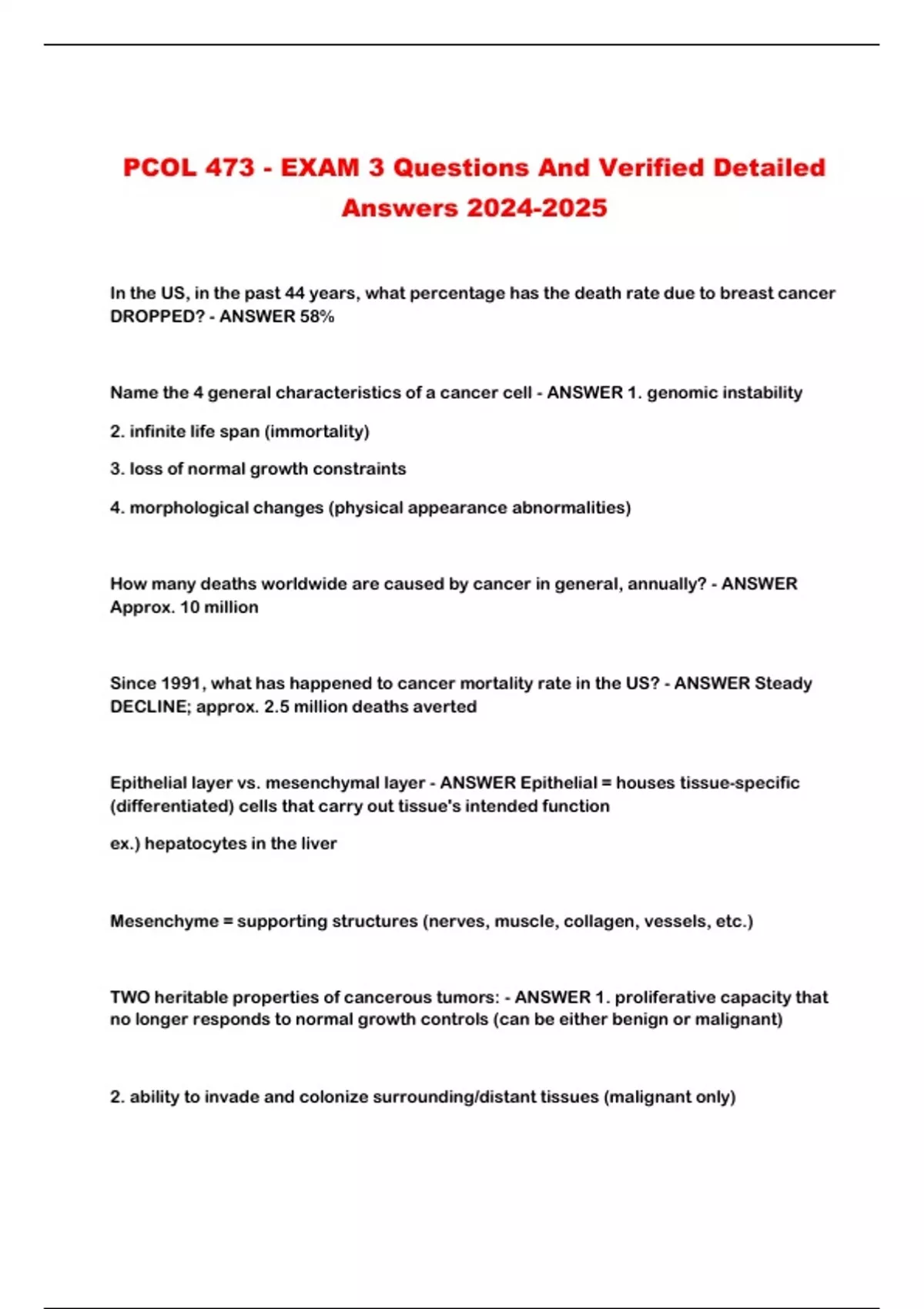 TWO heritable properties of cancerous tumors: - ANSWER 1. proliferative capacity that
