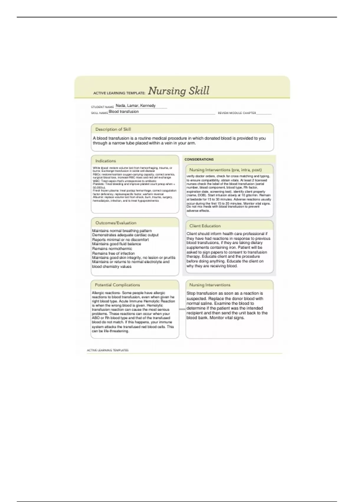 burns; Exchange transfusion in sickle cell disease Nursing Interventions (pre, intra, post)