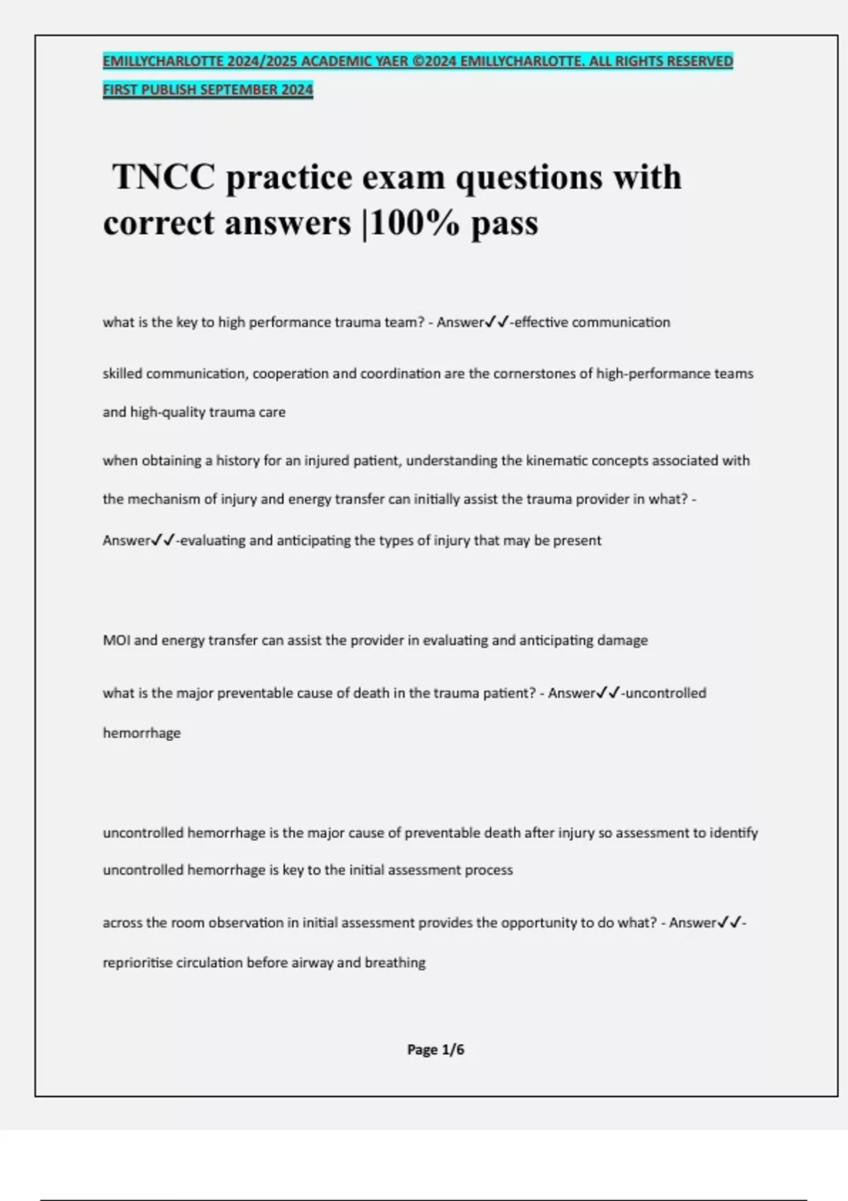 TNCC practice exam questions with