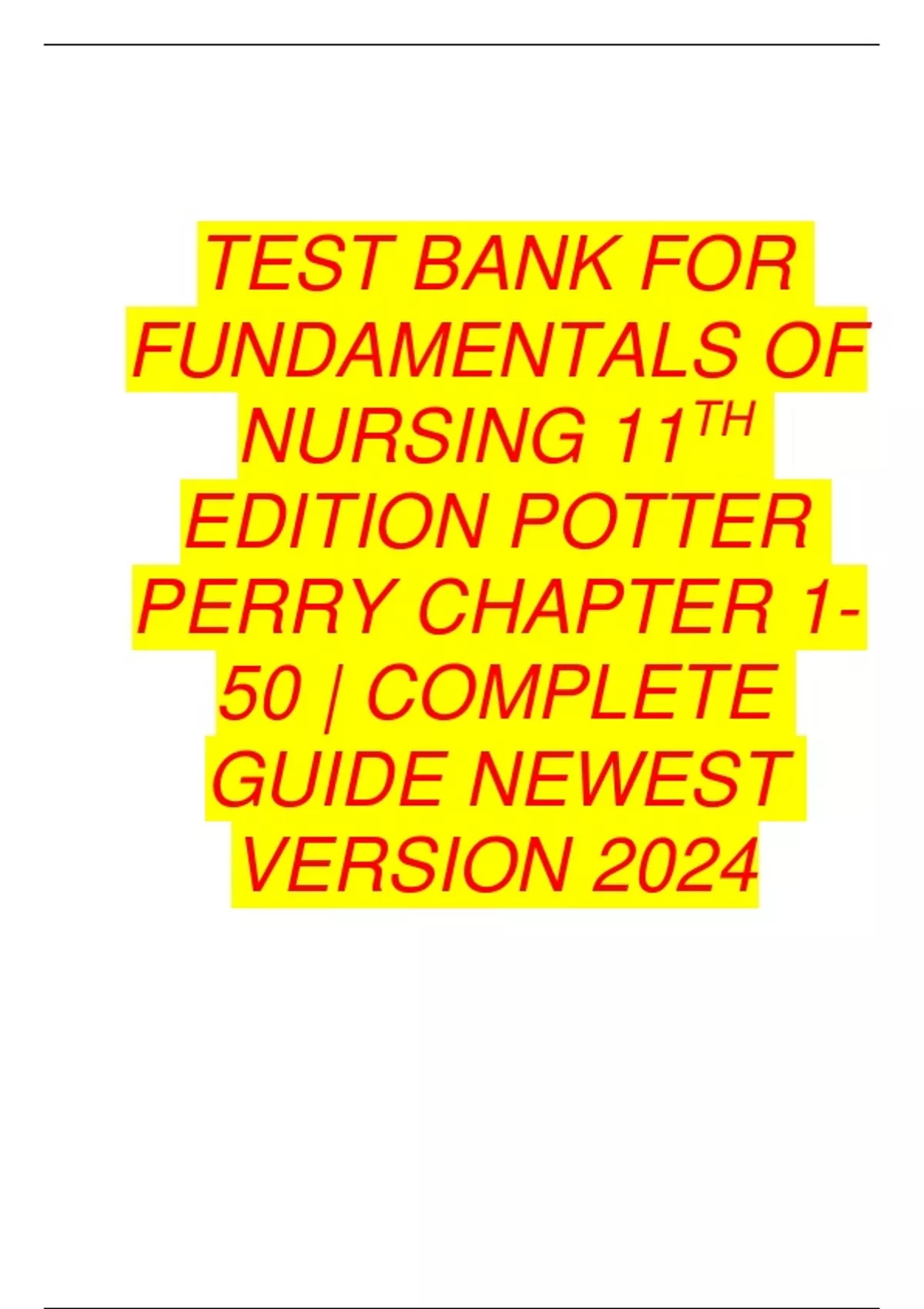 Test Bank For Fundamentals of Nursing 11th Edition Potter Perry Chapter 1-50 | Complete Guide Newest Version 2023