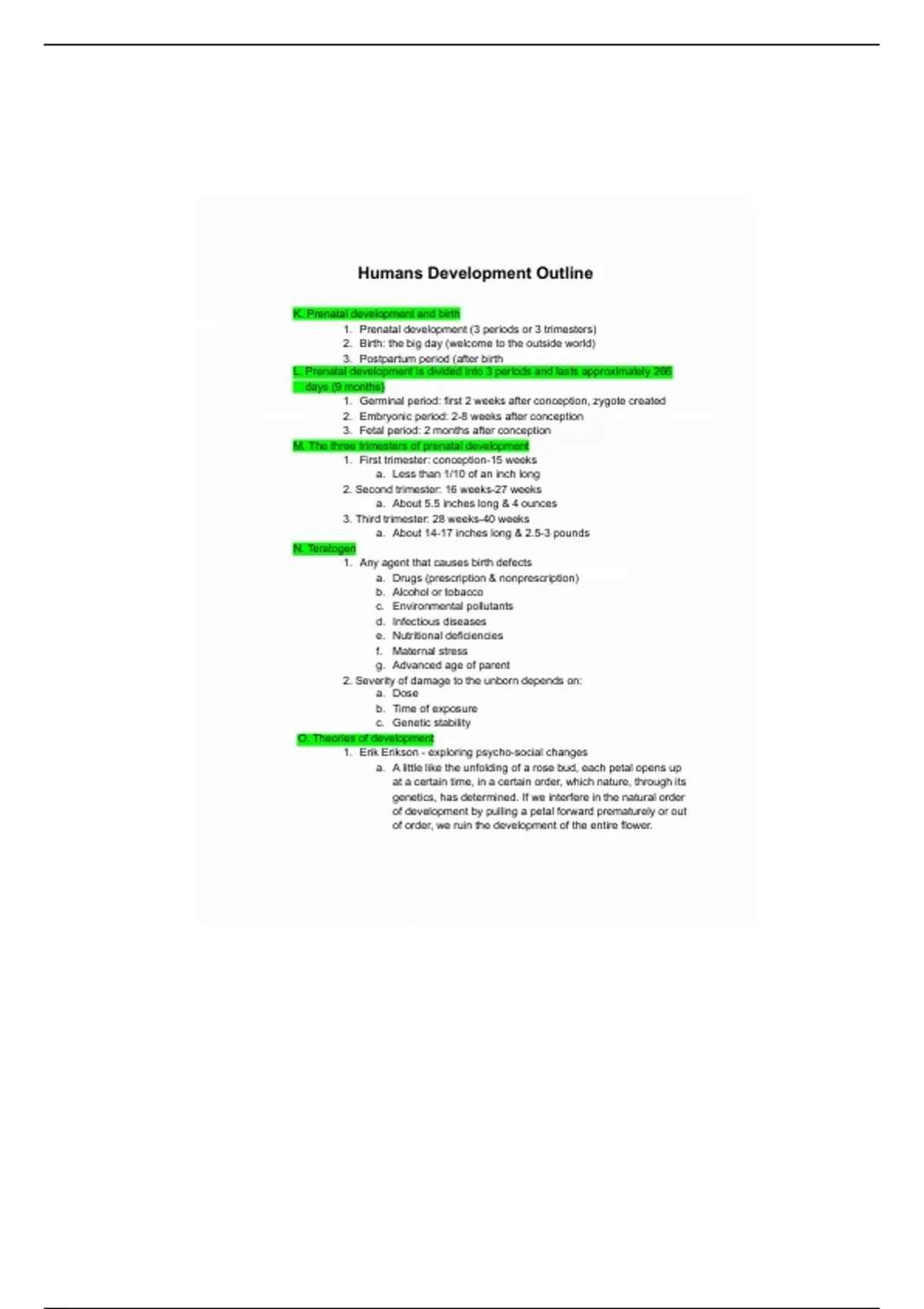 Human development outline for Psy 2012. *Essential Study Material!!