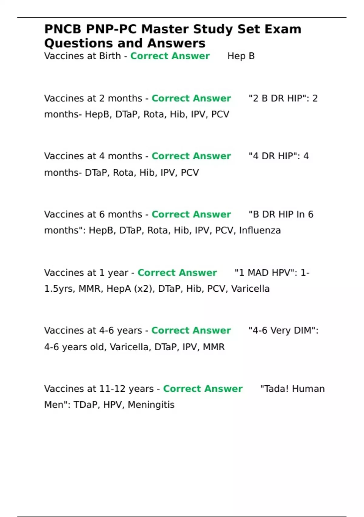 Vaccines at 6 months - Correct Answer ✅ "B DR HIP In 6