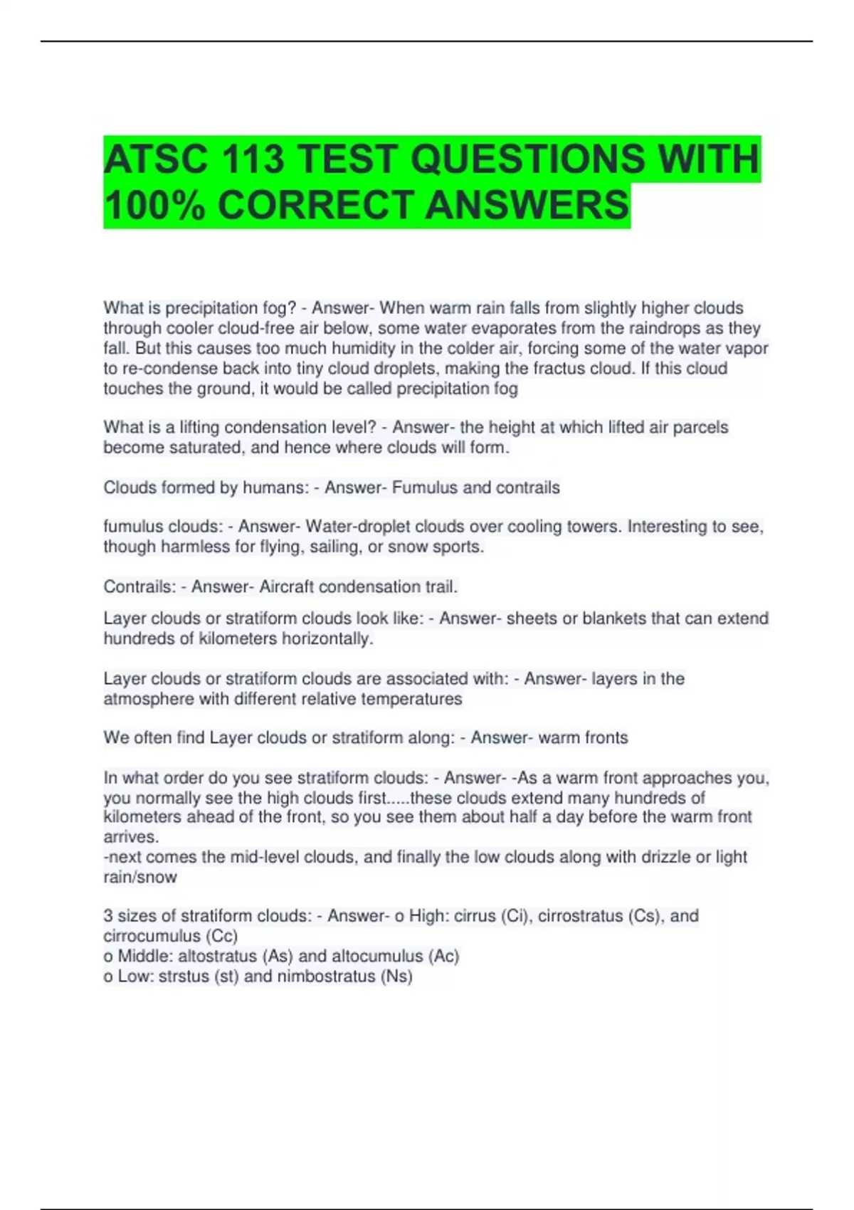 We often find Layer clouds or stratiform along: - Answer- warm fronts