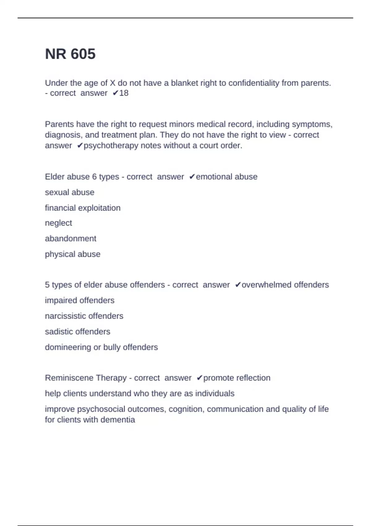 Elder abuse 6 types - correct answer ✔emotional abuse