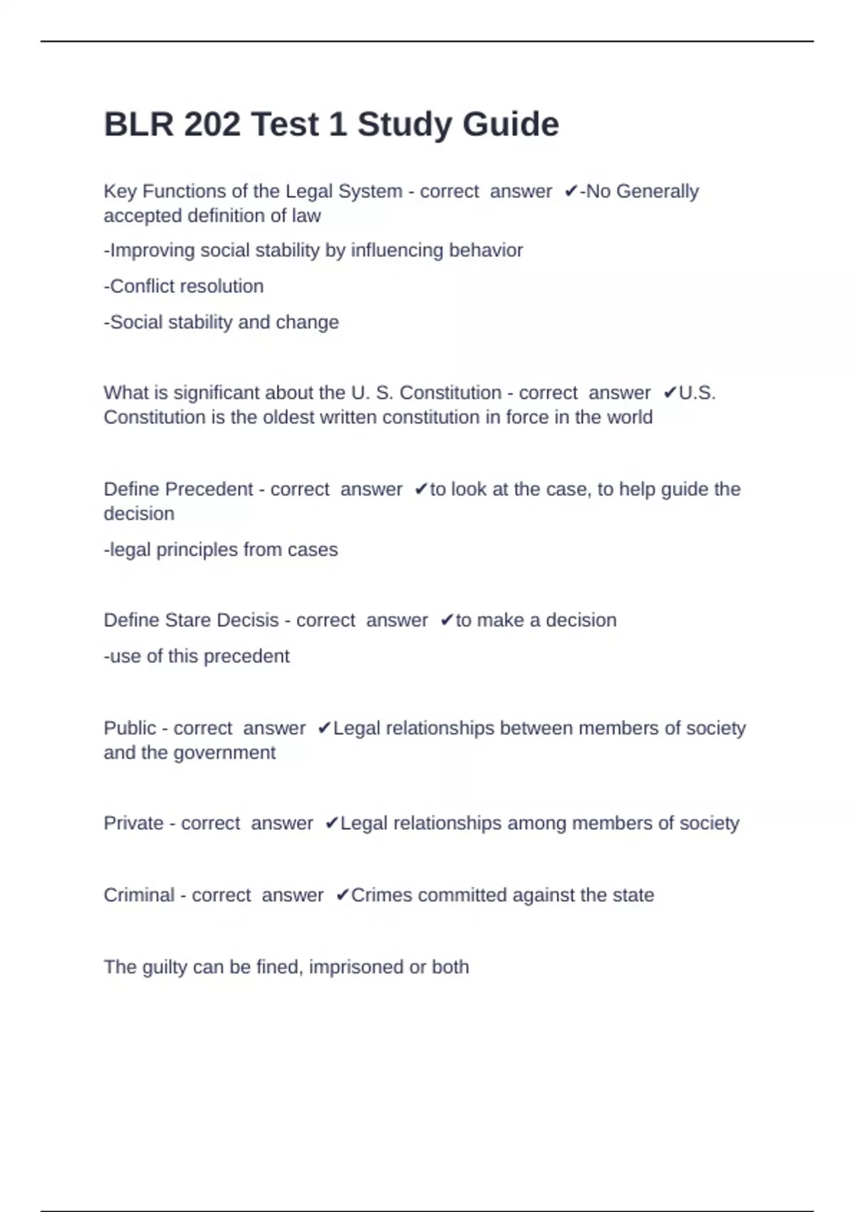 Key Functions of the Legal System - correct answer ✔-No Generally