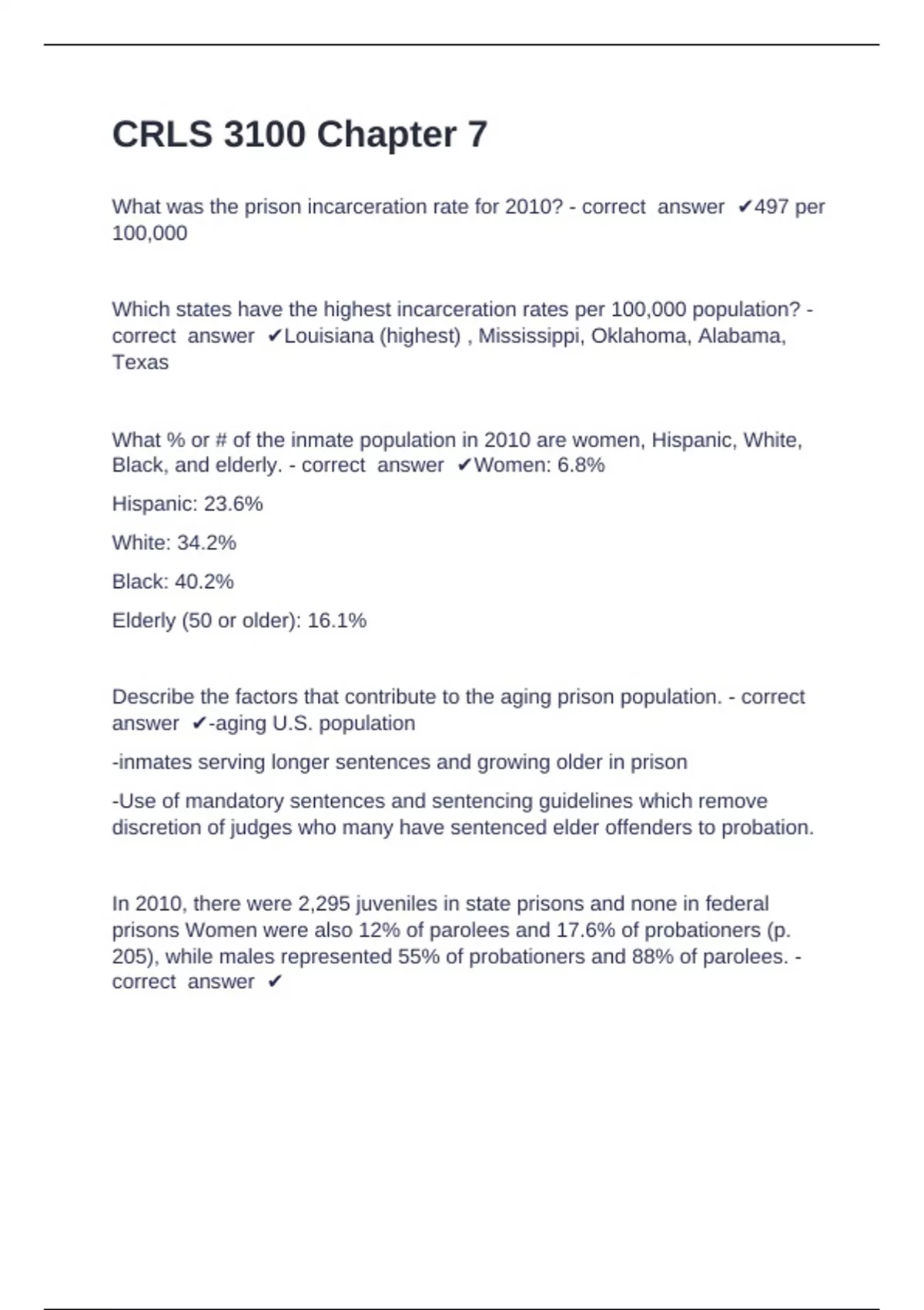 What was the prison incarceration rate for 2010? - correct answer ✔497 per