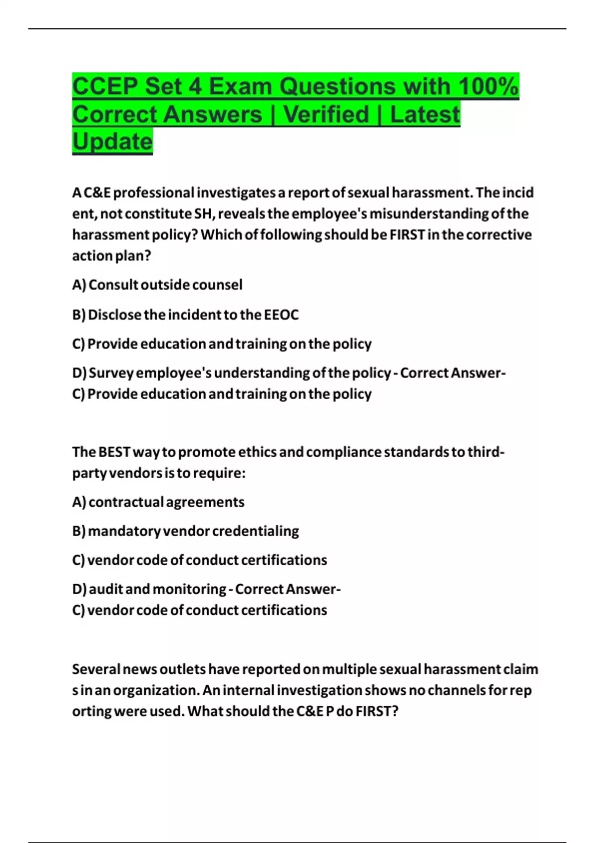 Correct Answers | Verified | Latest