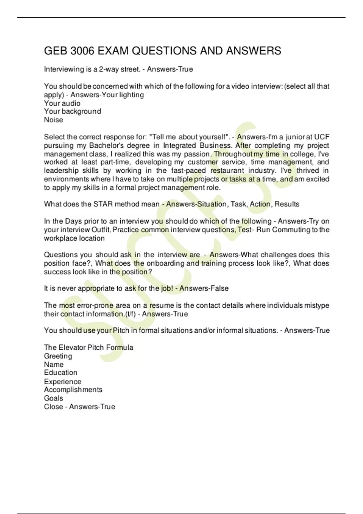 GEB 3006 EXAM QUESTIONS AND ANSWERS